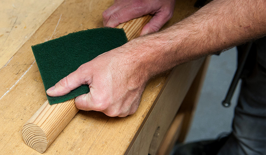Setelah membuat semua elemen tempat tidur, permukaan setiap bahagian mesti diampelas dengan teliti. Rasp itu melengkapkan semua sudut dan sudut yang tajam. Langkah seterusnya adalah melekatkan semua butiran sandaran di bahagian atas. Diperlukan untuk mengawasi segi empat tepat struktur.
