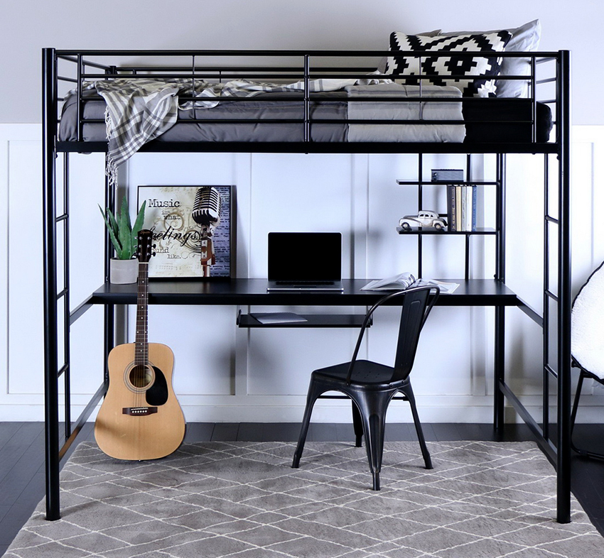 Tempat tidur loteng dianggap lebih berfungsi. Tempat tidur terletak di tingkat atas. Di bawahnya, anda boleh mengatur sistem penyimpanan lengkap dengan meletakkan peti laci, almari pakaian atau rak. Pembentukan struktur sedemikian memerlukan kemahiran dan kebolehan dalam pengeluaran perabot. Untuk dua orang anak, anda boleh membuat struktur dua peringkat, penciptaannya juga memerlukan pengalaman tertentu dari tuan.
