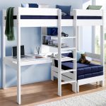 Untuk dua orang anak, pilihan terbaik adalah katil dua tingkat... Ketinggian struktur mencapai 1.5-1.8 m, bergantung pada ketinggian siling di dalam bilik. Dimensi luar tempat tidur mungkin berbeza. Tempat tidur, yang terletak di tingkat kedua, memiliki dimensi 80x200 atau 90x200 cm. Tempat tidur di tingkat bawah boleh lebih pendek 20-30 cm.