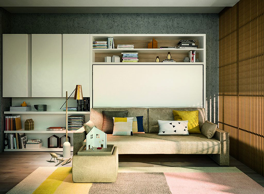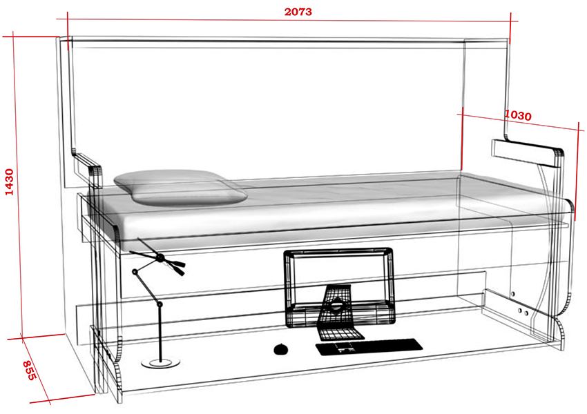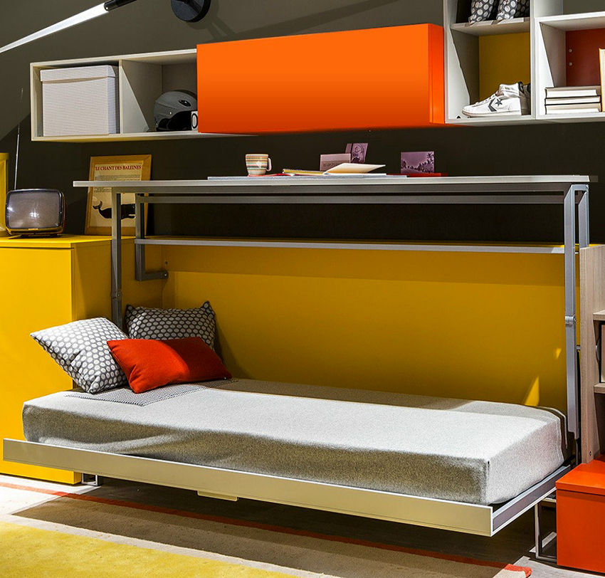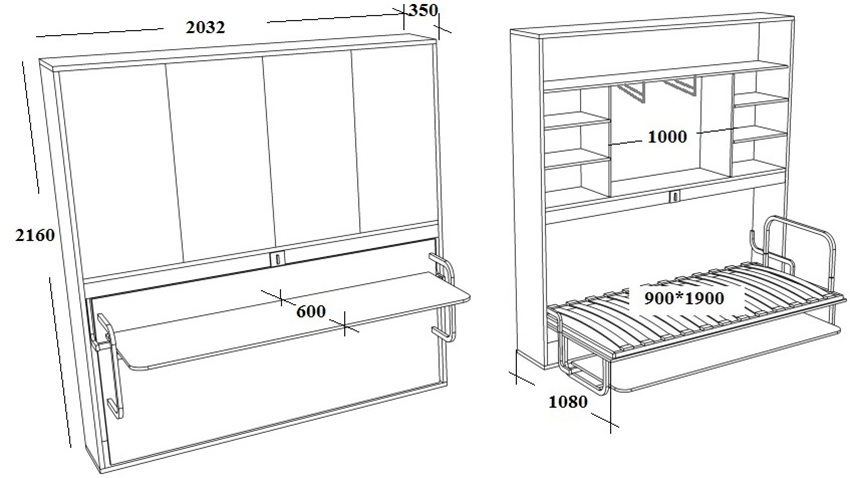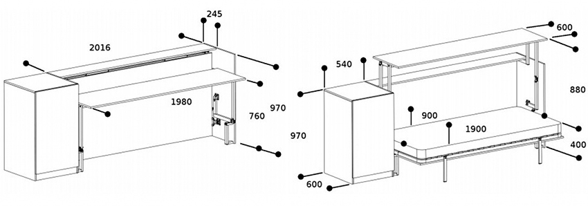 Mekanisme mengangkat boleh dibuat secara bebas dari trunnion dengan galas atau dari langsir garaj. Pilihan yang lebih dipercayai ialah membeli kit kilang. Mekanisme mesti dipasang pada kotak dan tempat tidur.Bahagian depan tempat tidur dalam kedudukan tegak boleh dihiasi di bawah almari pakaian dengan pintu tiruan dengan pegangan atau membuat permukaan cermin monolitik.