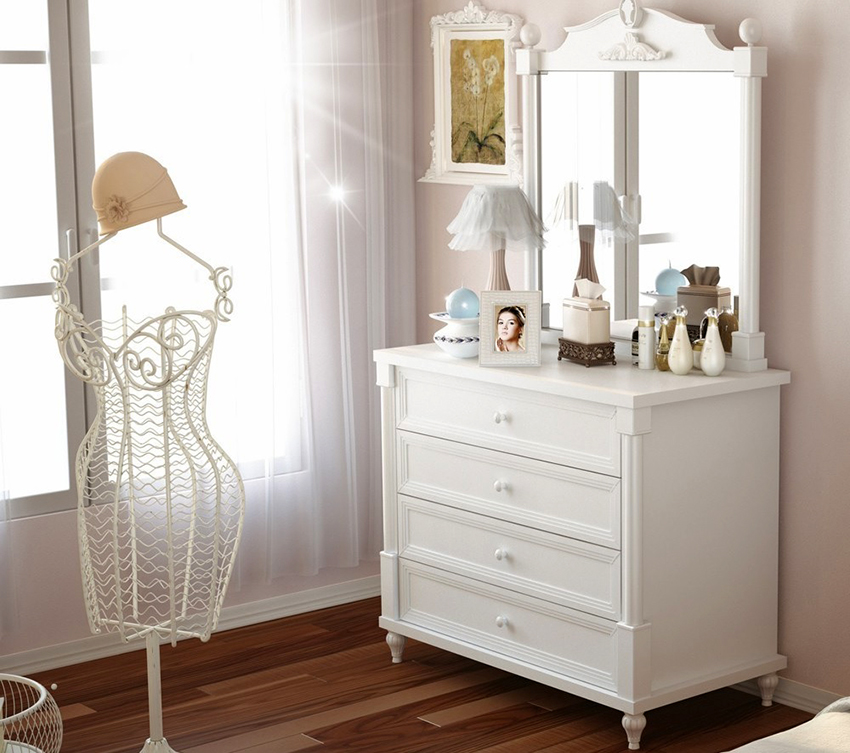 Nasihat berguna!Cukup untuk meletakkan cermin di atas laci dan ia akan menjadi meja solek yang selesa di bilik tidur.