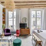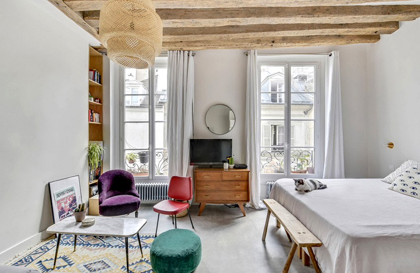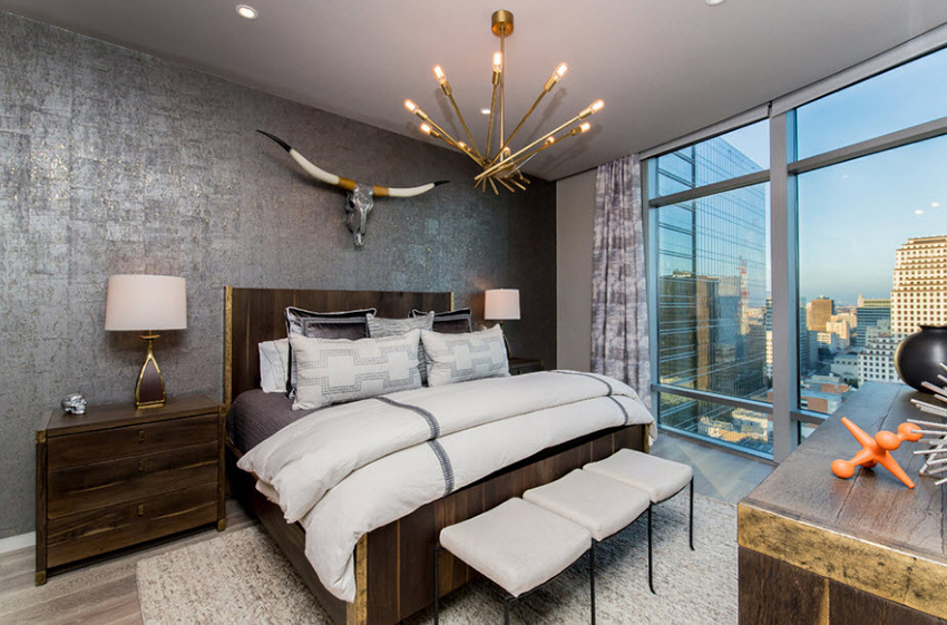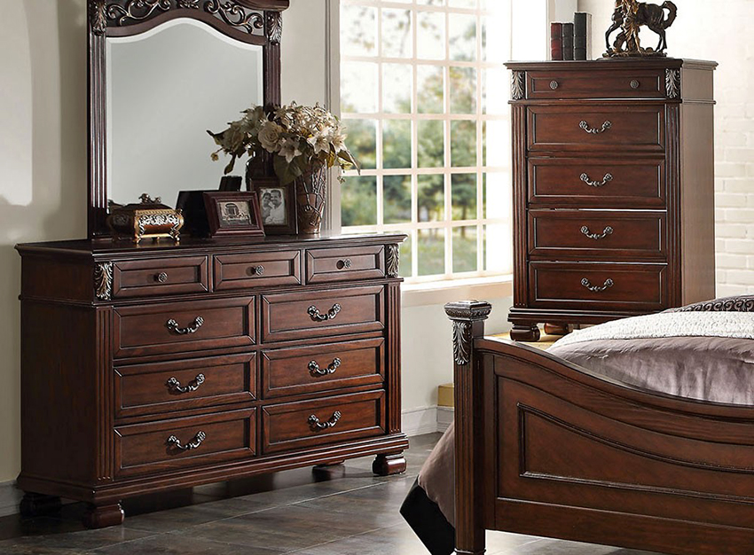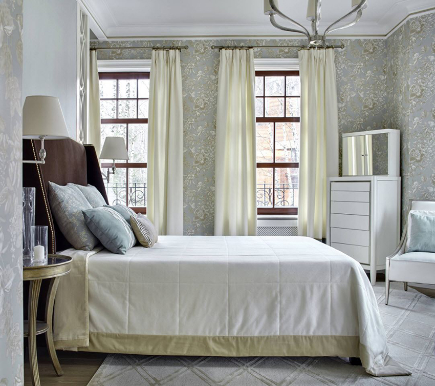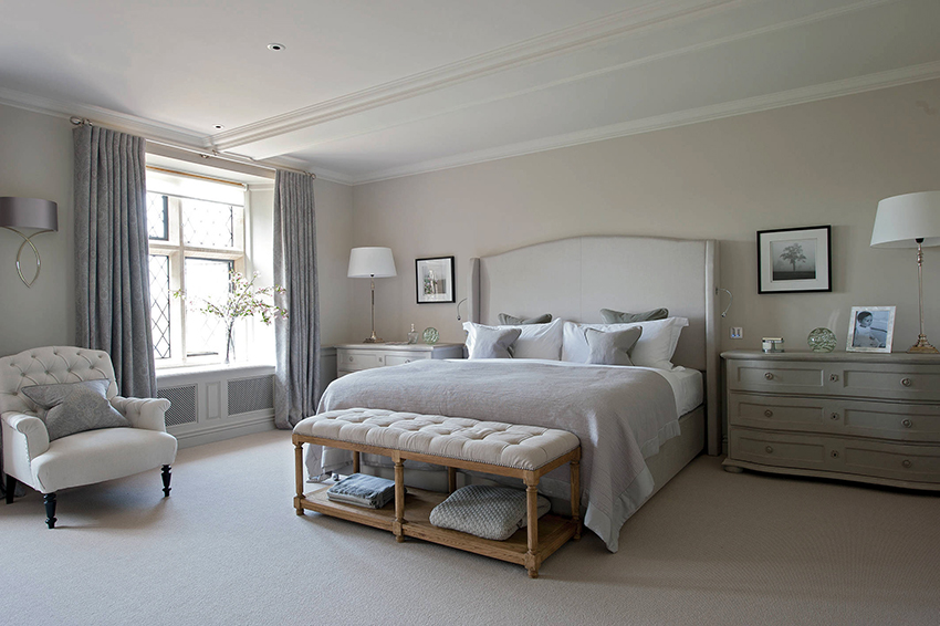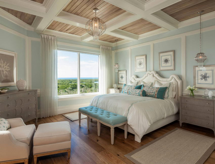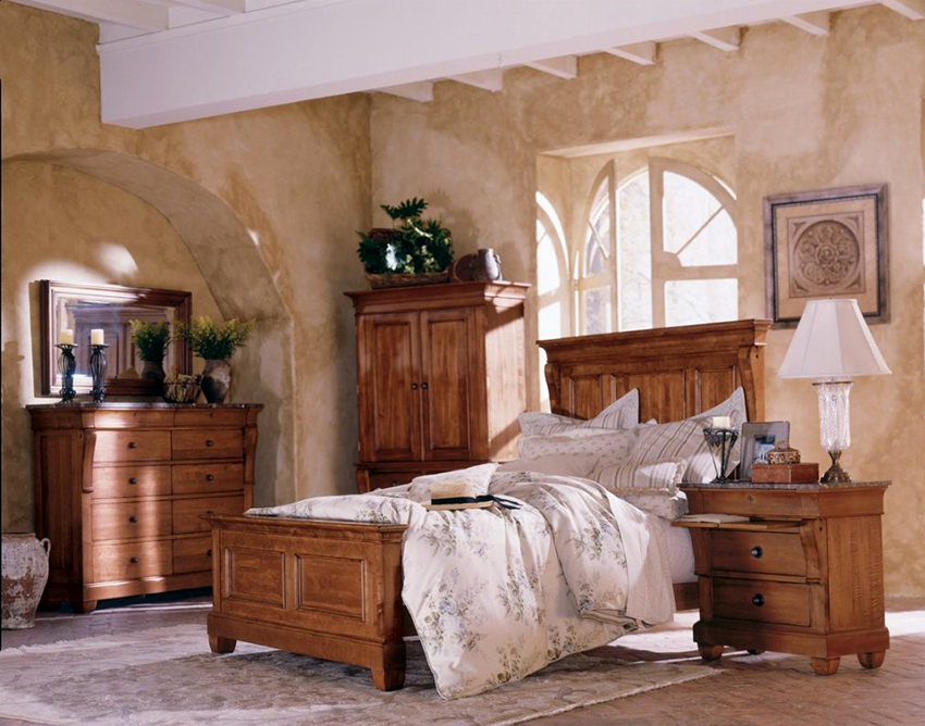 cermin di bilik tidur di atas peti laci, serta banyak elemen hiasan yang berbeza dalam bentuk ukiran atau lukisan, menyumbang kepada reka bentuk bilik yang indah, yang memberikan kecanggihan dan penampilan mewah pada bahagian dalam.