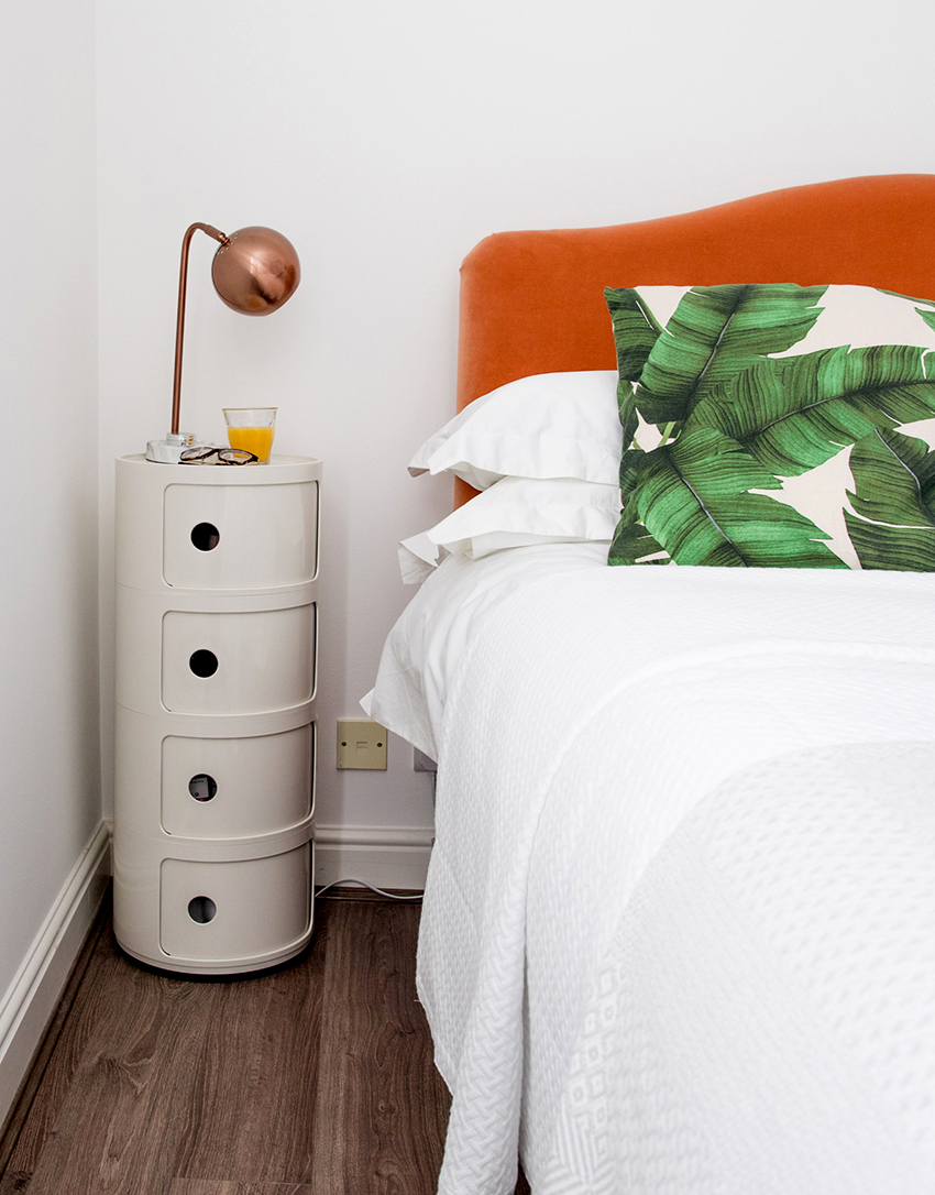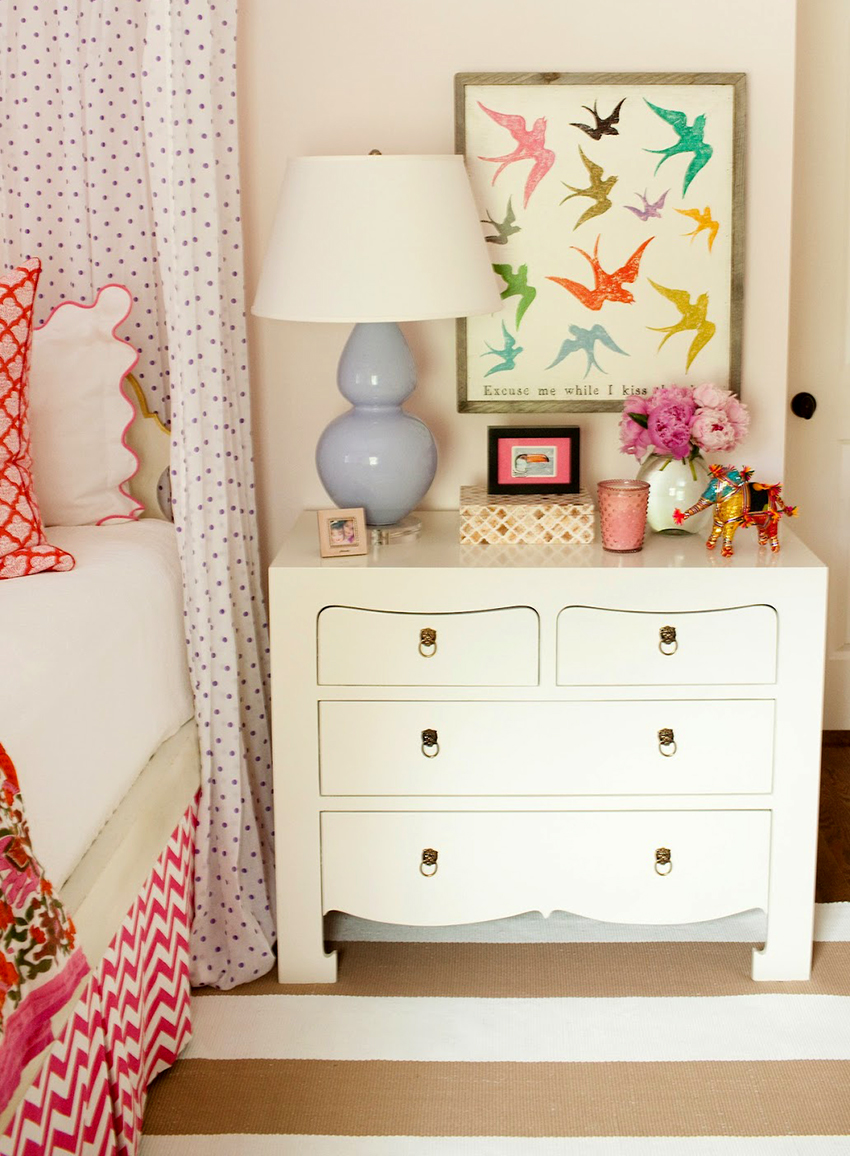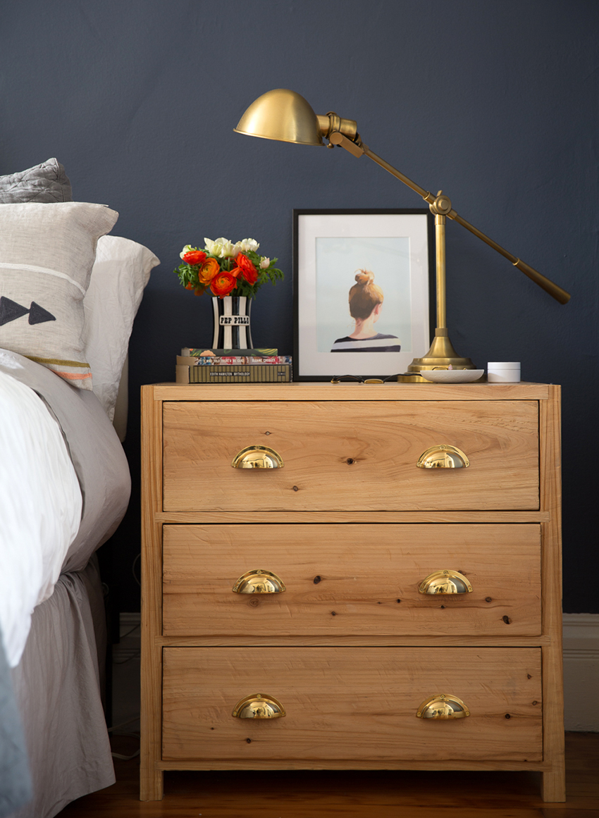 Laci kecil di dekat tempat tidur akan membantu menyimpan semua yang anda perlukan