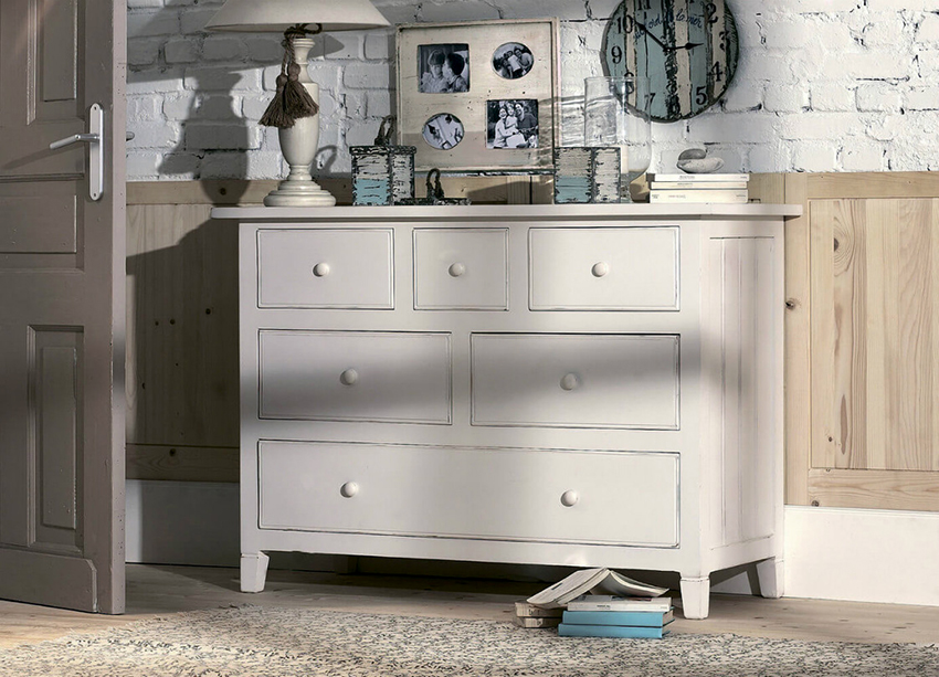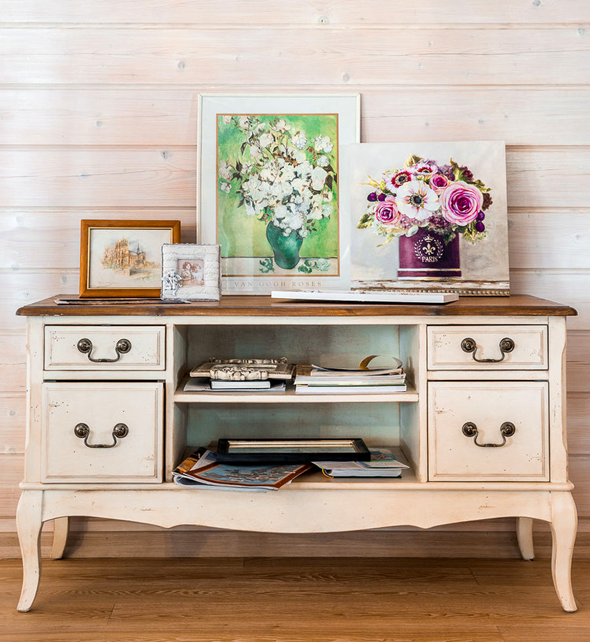 Laci gaya Provence menyediakan lukisan dalam warna pastel, serta hiasan menggunakan teknik decoupage. Perabot gaya loteng dikuasai oleh bahan kasar, khususnya kayu mentah atau logam.