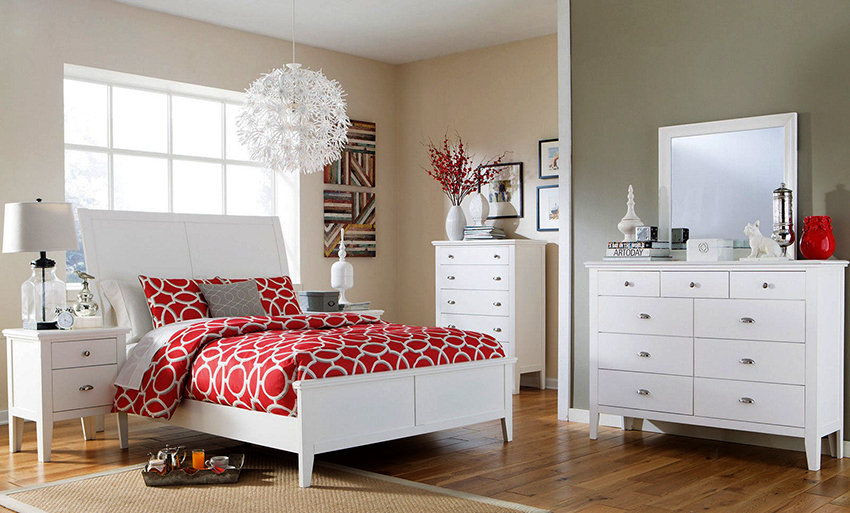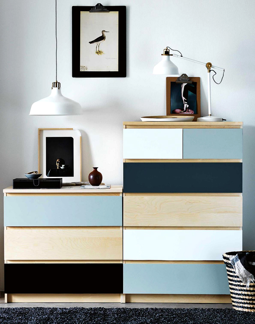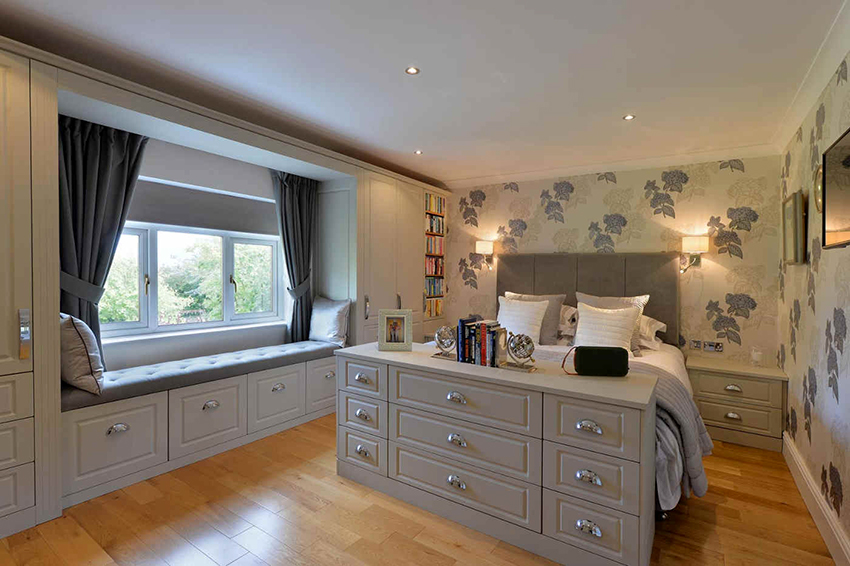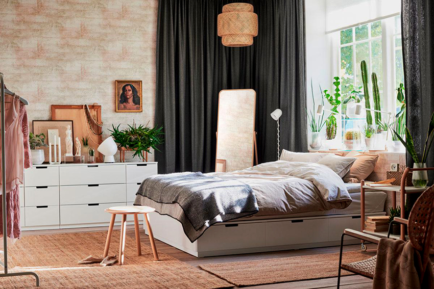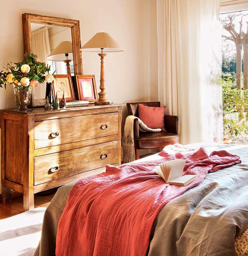 Model, bahan dan warna laci harus sesuai dengan reka bentuk bilik tidur