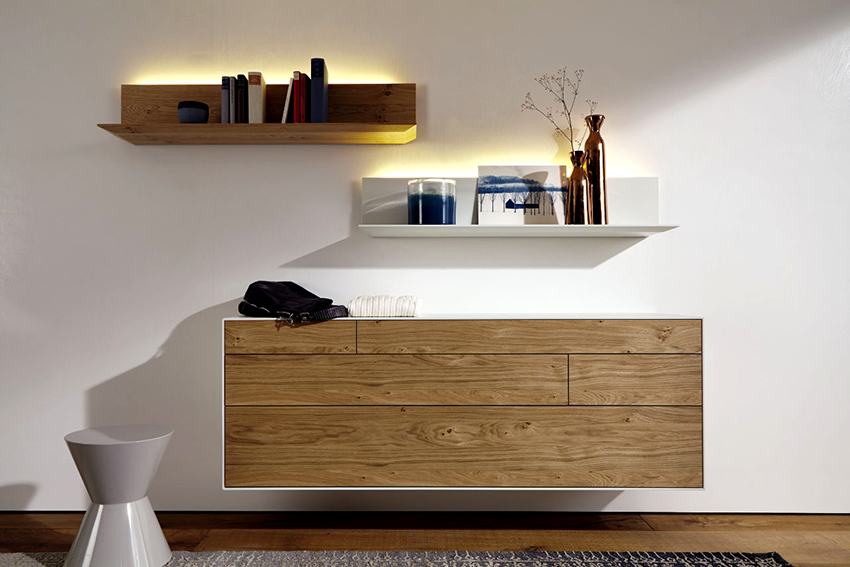 Hiasan gantung menggabungkan dua produk: di satu pihak, ia adalah almari pakaian yang digantung di dinding, di sisi lain, ia adalah rak hiasan. Model ini mempunyai banyak kelebihan, kerana dapat membantu mewujudkan rasa ruang, ringan dan kebebasan di dalam bilik. Selain itu, dengan laci seperti itu, membersihkan bilik akan menjadi lebih mudah, kerana membersihkan lantai di bawahnya cukup mudah. Sebagai tambahan kepada kelebihan yang disenaraikan, kabinet gantung dibezakan oleh kelapangan dan fungsinya. Kelebihan utama laci yang tergantung adalah keasliannya.