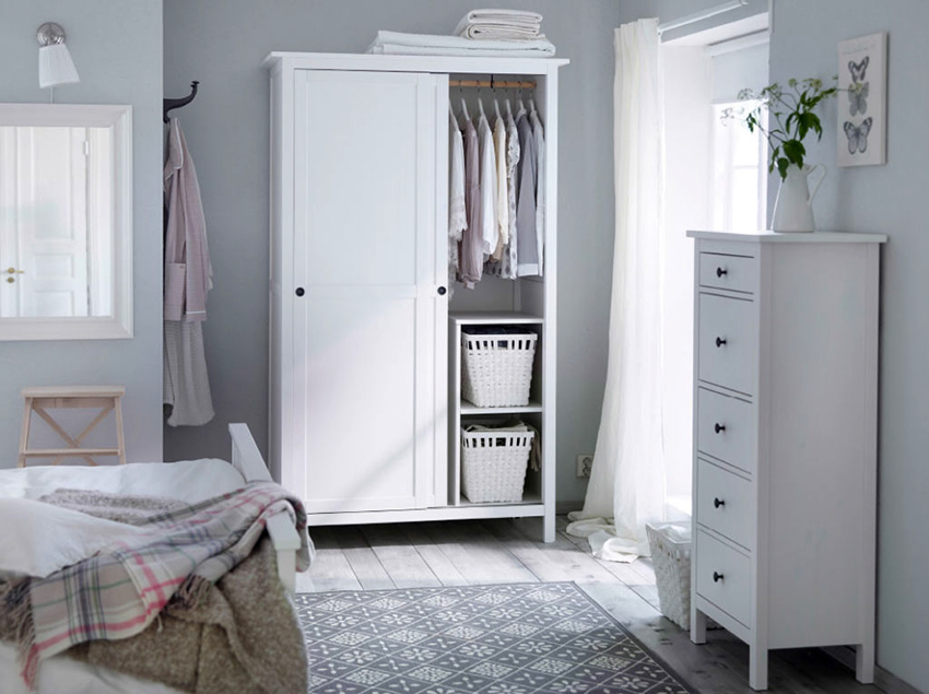 Untuk bilik tidur kecil, lebih baik membeli almari yang sempit, untuk yang luas, model dengan lebar apa pun sesuai