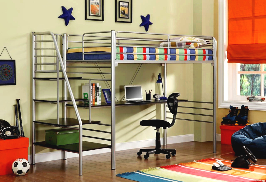 Katil loteng dengan ruang kerja untuk budak lelaki: ciri reka bentuk