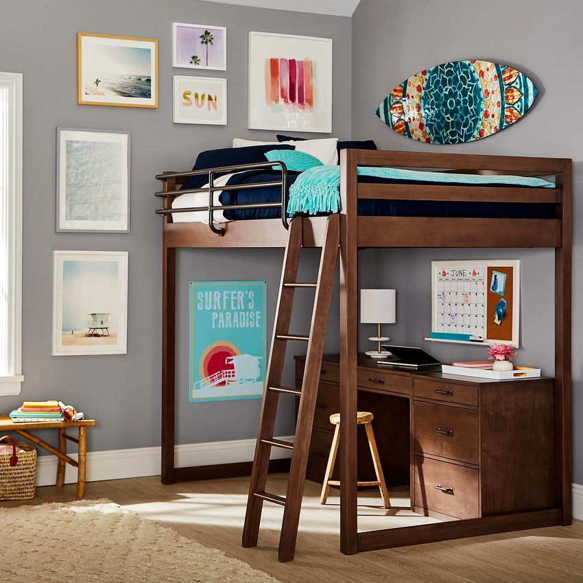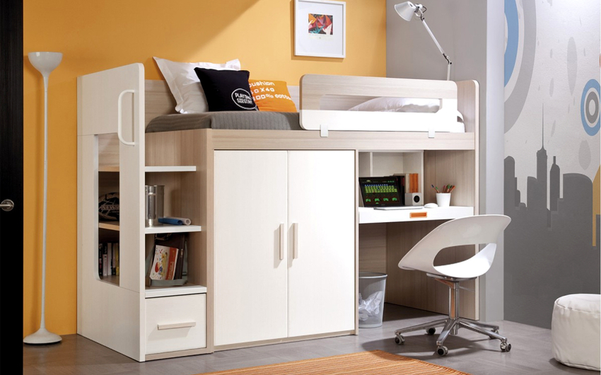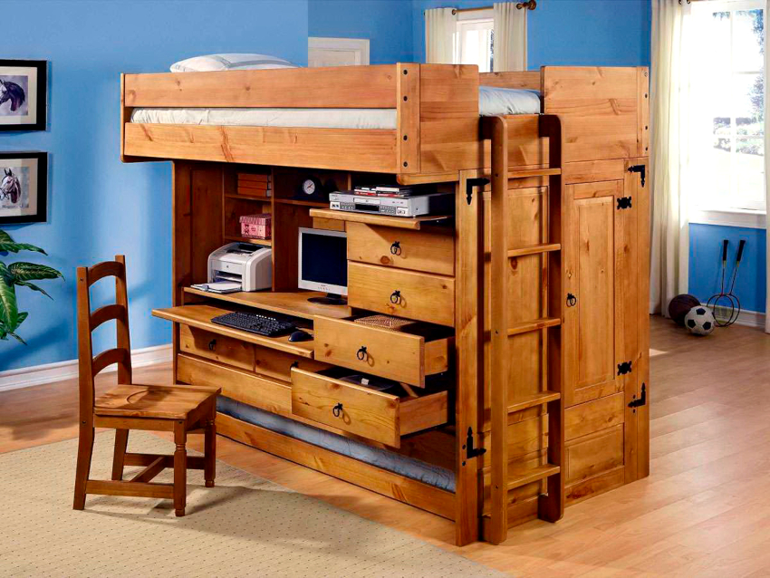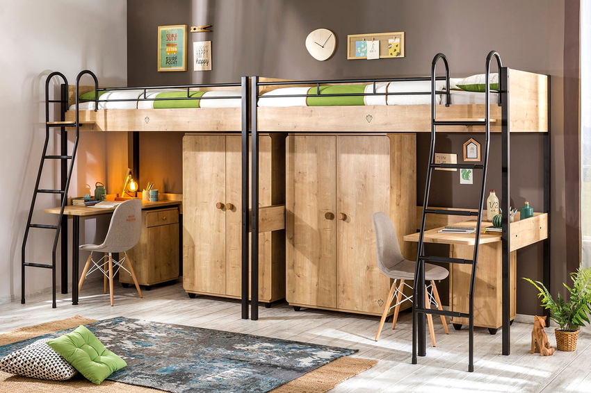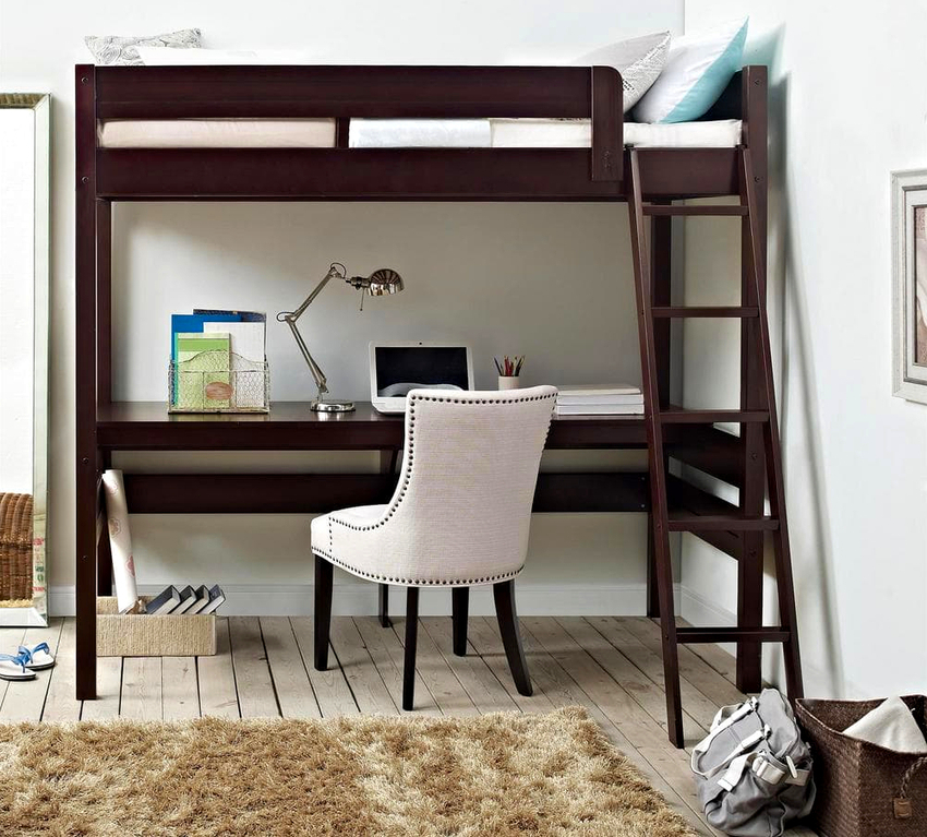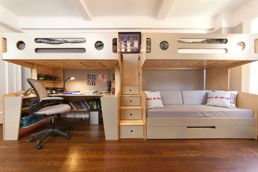 Kelebihan katil loteng dengan sofa, almari pakaian atau ruang kerja