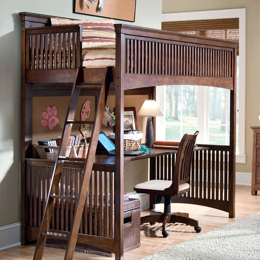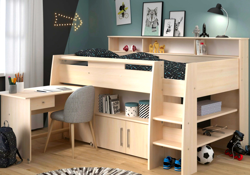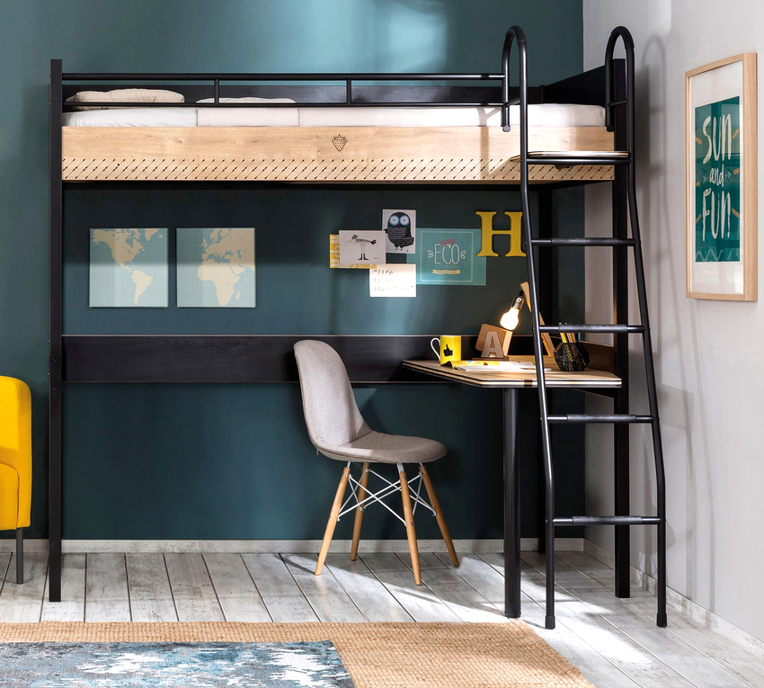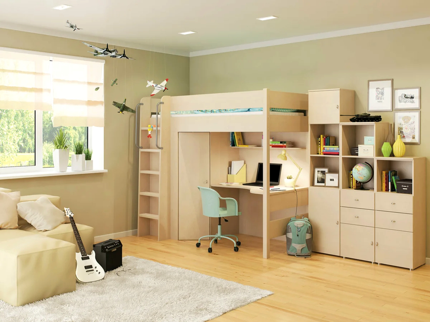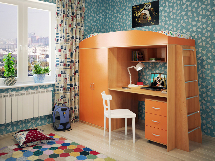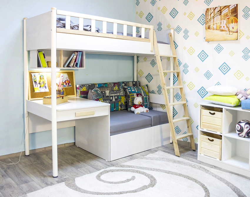 Katil loteng dengan ruang kerja untuk remaja dapat menjimatkan ruang di bilik kanak-kanak dengan ketara