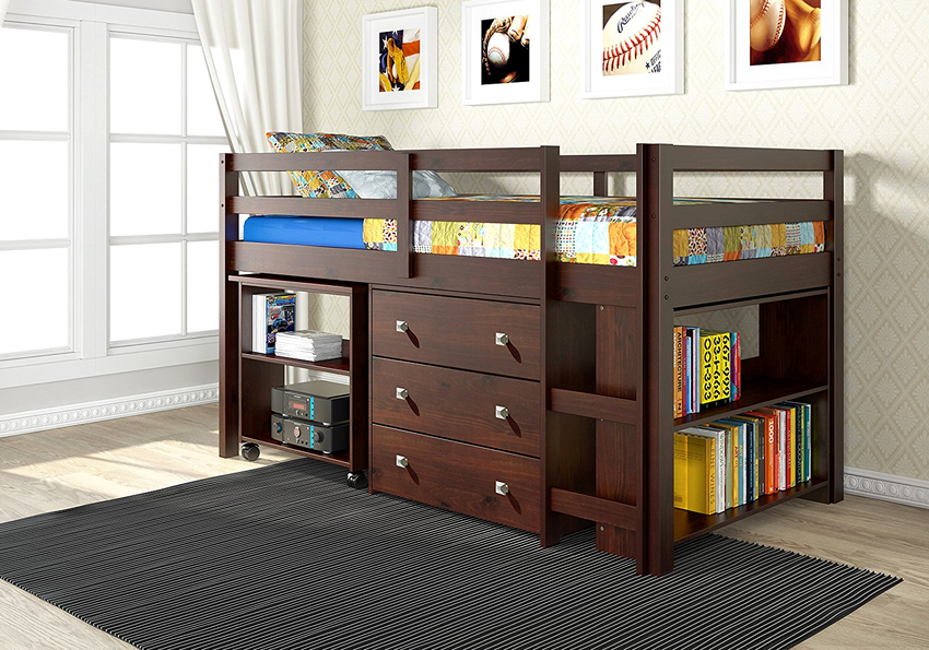 Terdapat banyak pilihan tempat tidur loteng yang dijual. Di samping adanya tempat tidur yang lengkap, yang terletak di bahagian atas struktur, tempat tidur loteng untuk kanak-kanak dengan kawasan kerja di bawah boleh dilengkapi dengan cara ini: