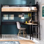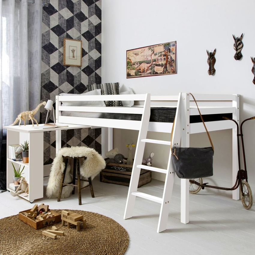 Tempat tidur loteng dengan kawasan kerja untuk kanak-kanak yang lebih kecil tingginya jauh lebih kecil