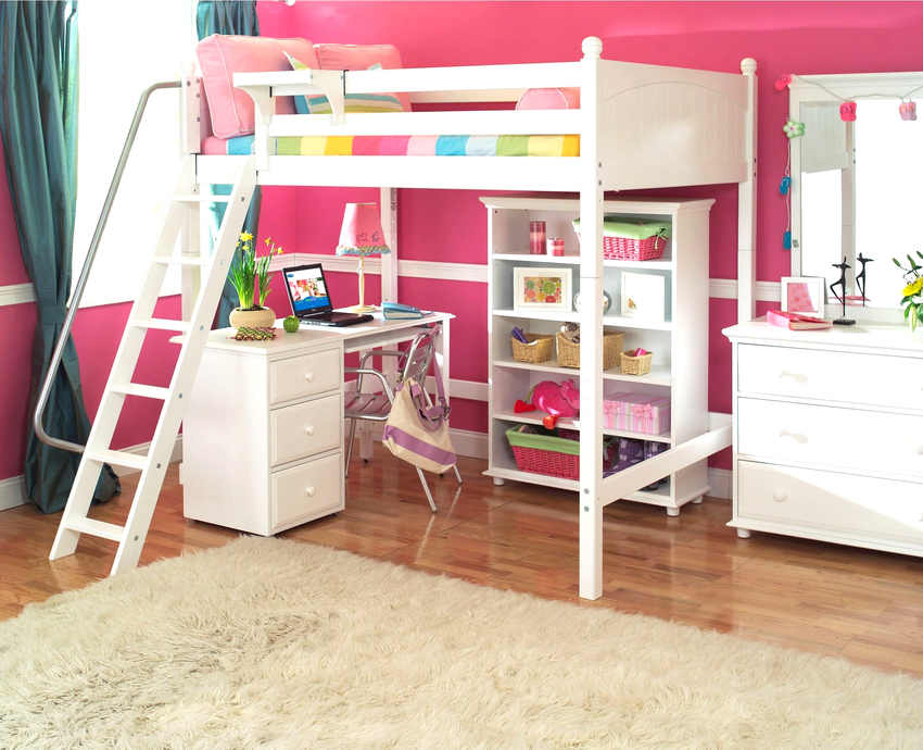 Bagi seorang gadis remaja, tempat tidur loteng tidak hanya menjadi tempat tidur, tetapi juga kawasan kegemaran untuk bersantai dan hiburan.