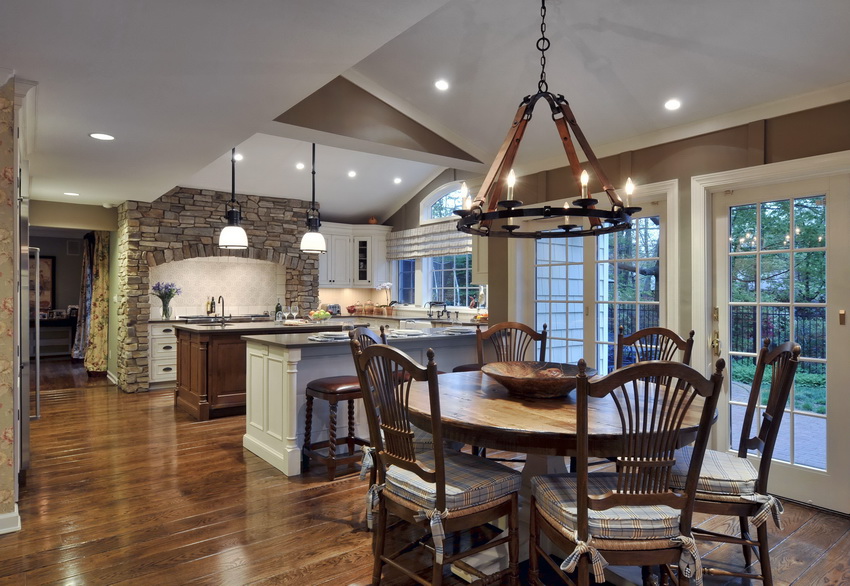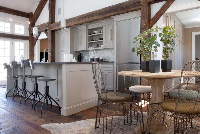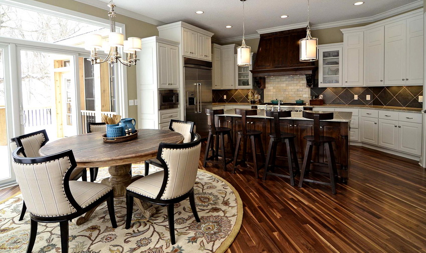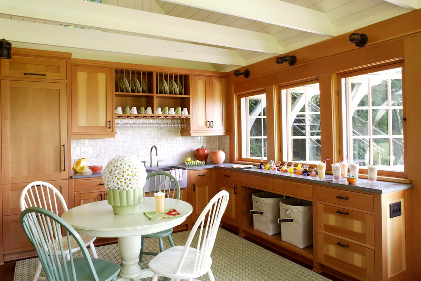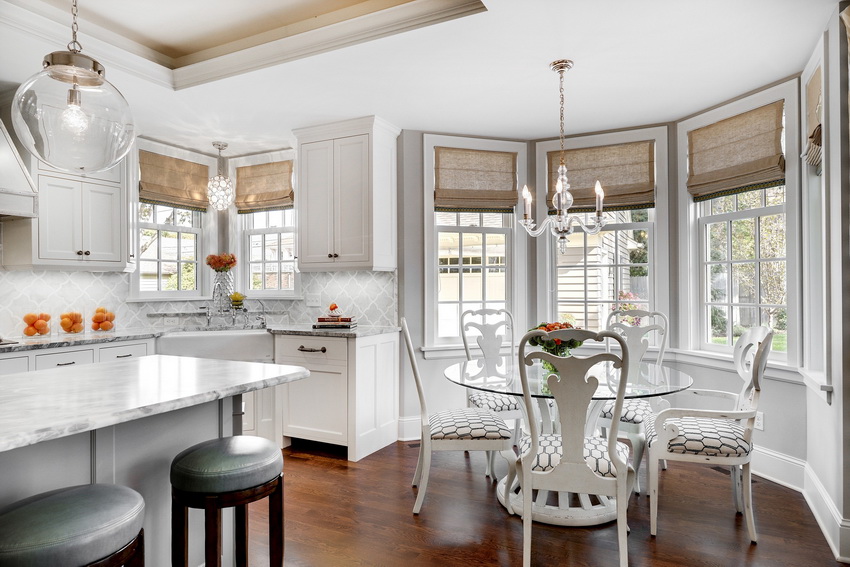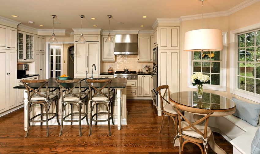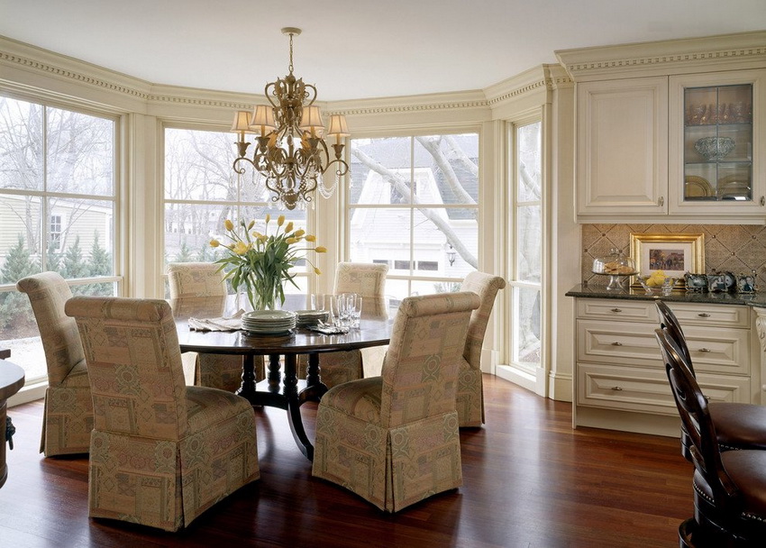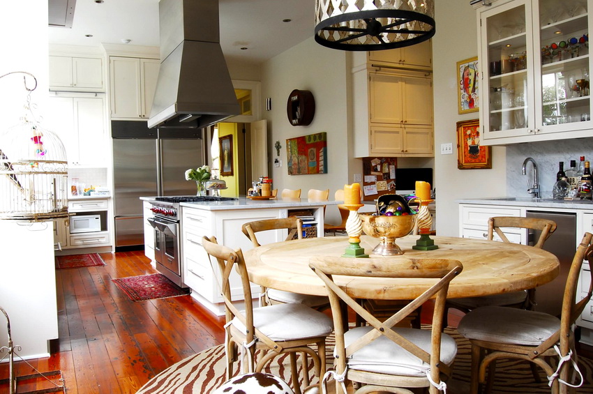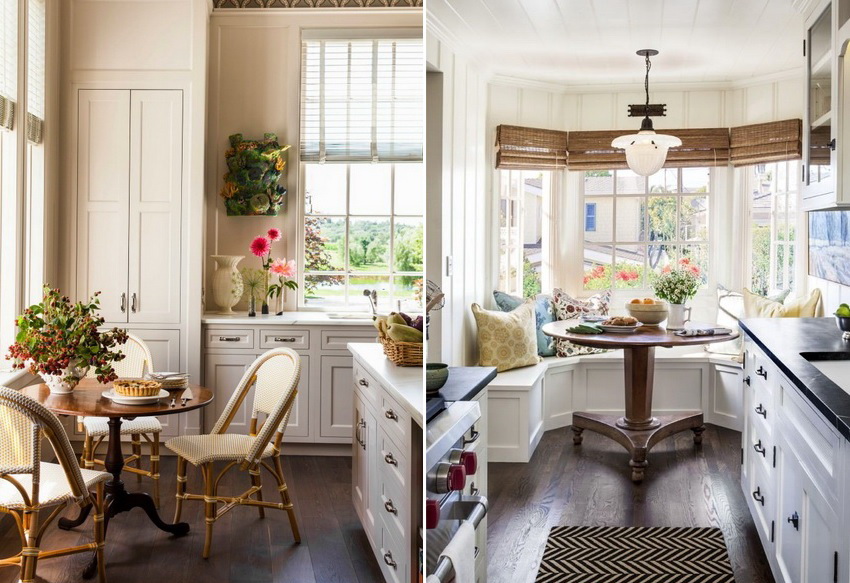 Meja bulat di bahagian dalam dapur: ciri penginapan