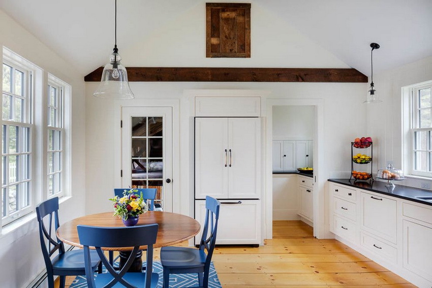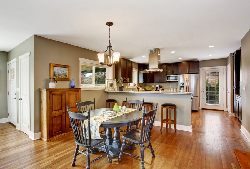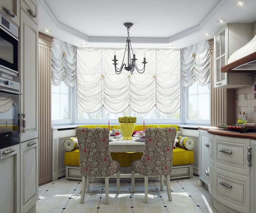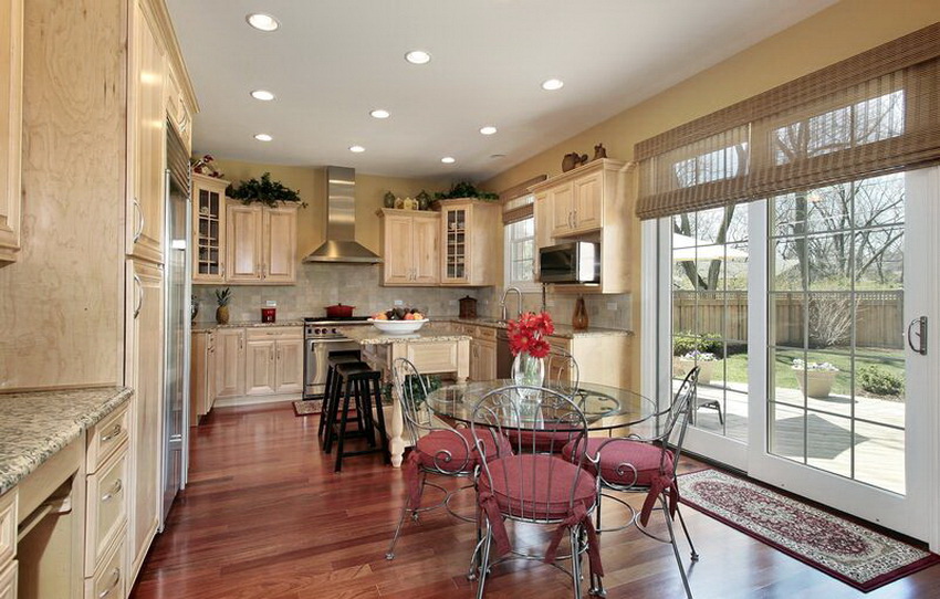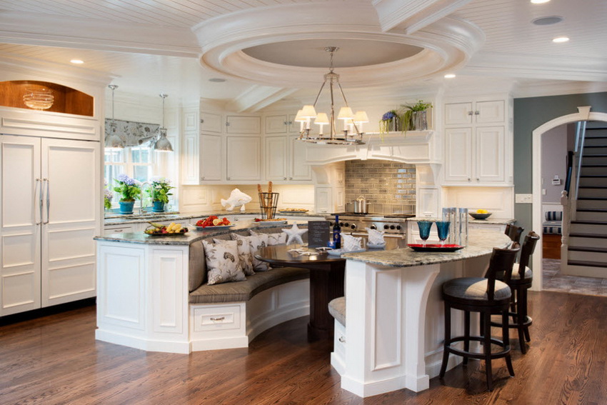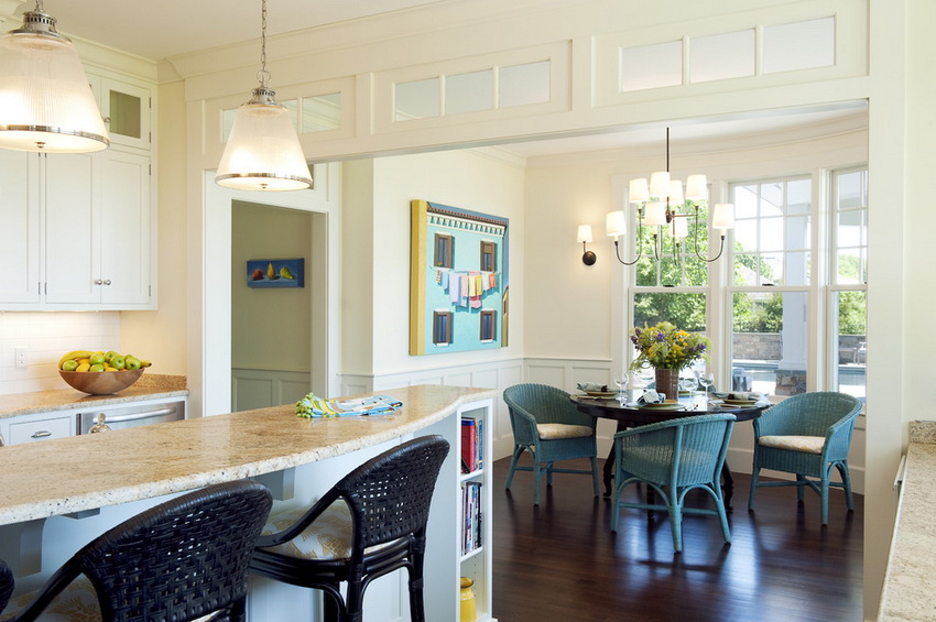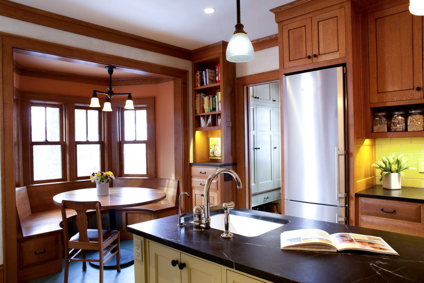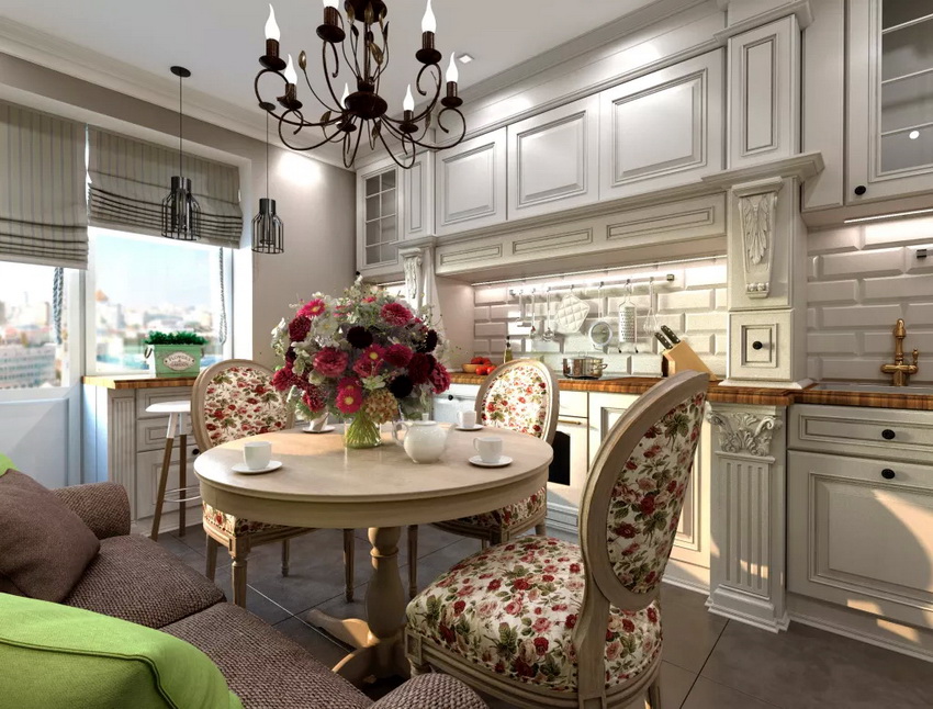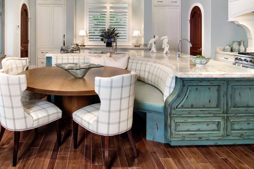 Meja bulat di bahagian dalam dapur: ciri penginapan