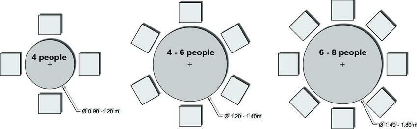 Menentukan jumlah tempat duduk ketika membeli model bulat adalah sangat penting, kerana semua ahli keluarga mesti muat di sini. Untuk memilih meja makan di mana semua orang akan merasa selesa, anda boleh menggunakan jadual pengiraan ini.
