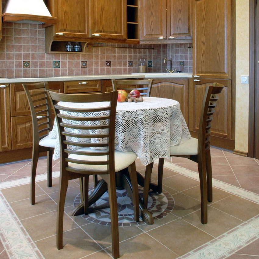 Apabila lantai di dapur ditutup dengan linoleum, maka lama-kelamaan jejak kaki akan muncul di atasnya. Penyok akan sangat dalam jika meja dibuat dari kayu keras yang kukuh. Dalam situasi seperti itu, adalah wajar untuk membeli meja di sebelah kaki untuk dapur.