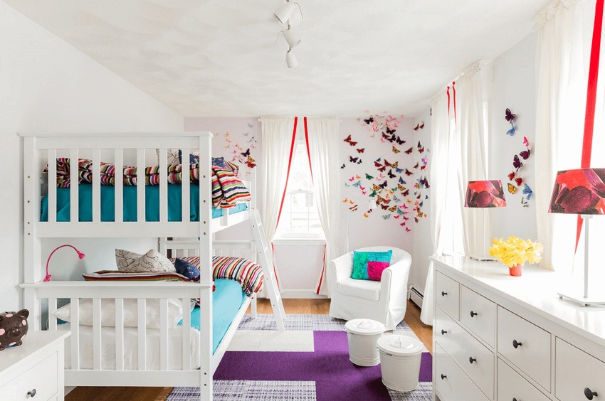 Sekiranya terdapat dua gadis dalam keluarga, anda perlu memberi perhatian kepada tekstil dan hiasan untuk menghias bilik.