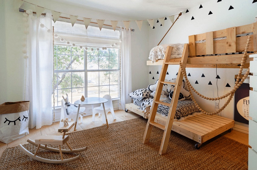 Tempat tidur bertingkat untuk dua kanak-kanak dari pelbagai usia tidak hanya berfungsi secara selesa, tetapi dalam kebanyakan kes menjadi asas dalaman, yang menjadi kemuncaknya.