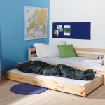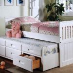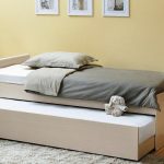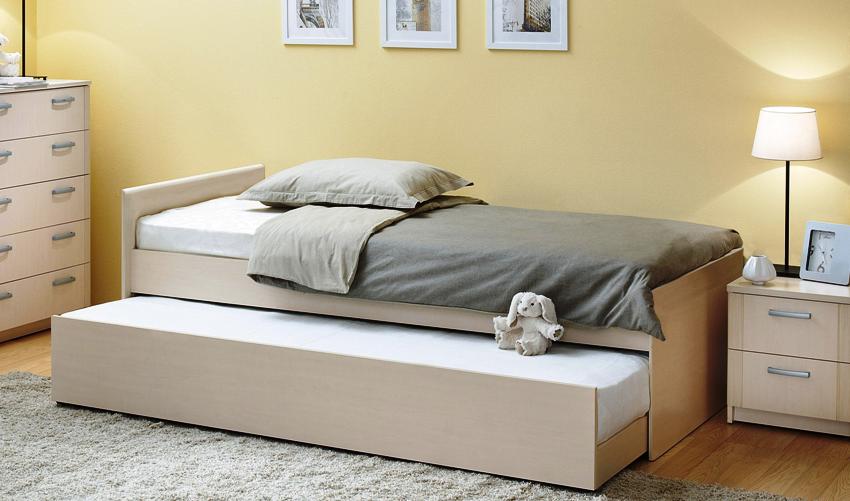 Sekiranya perabot tidur kanak-kanak ini ditolak dan ditolak setiap hari, ada baiknya memasang meja di sisi katil atau laci di sebelah katil untuk menyimpan peralatan tempat tidur. Niche, yang merangkumi bahagian gelongsor struktur, selalunya tidak menyiratkan adanya ruang kosong atau kotak tambahan untuk bantal, selimut, selimut, dll.