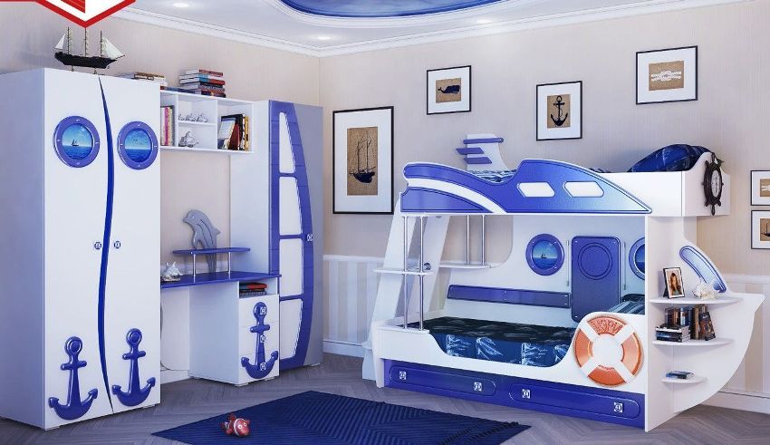 Walaupun kawasan bilik kanak-kanak agak besar, lebih baik membeli perabot yang padat sehingga ada cukup ruang untuk aktiviti motor kanak-kanak lelaki. Pilihan untuk almari pakaian adalah mudah bukan dengan pintu swing, tetapi dengan pintu gelangsar. Mereka menjimatkan ruang dengan tidak memerlukan sejumlah ruang kosong di hadapan mereka.