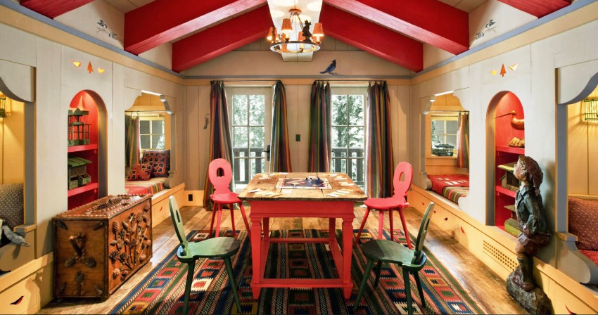Banyake gambar sudut kanak-kanak jenama ini menunjukkan bukan sahaja kawasan permainan yang terpencil, tetapi juga tempatnya di kawasan pedalaman umum, yang akan membantu dalam menghias bilik secara keseluruhan.