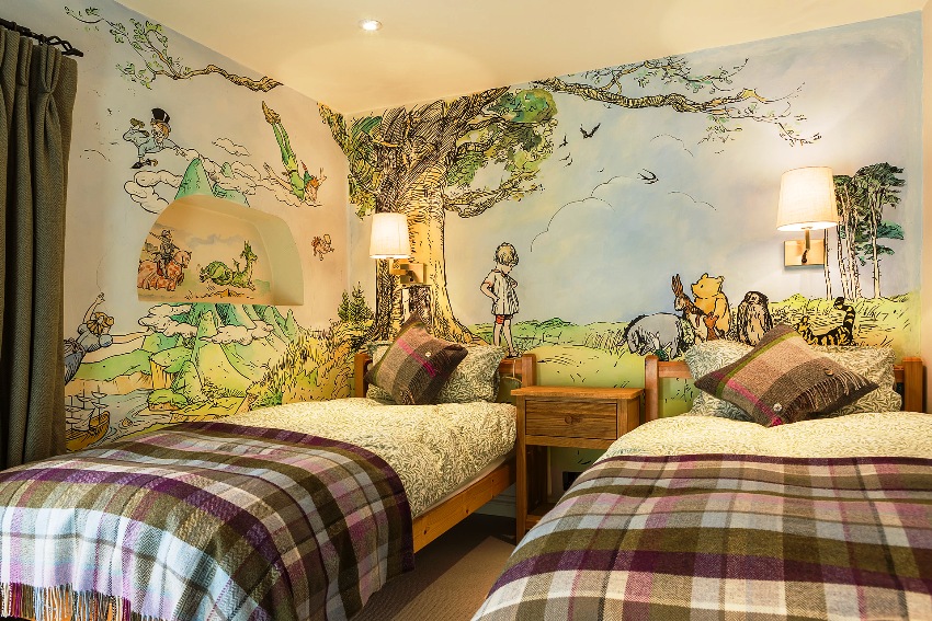 Kanak-kanak suka lukisan dinding dengan gaya dan kandungan yang berbeza, dan selalunya berbeza pada palet warna yang digunakan. Zon aktiviti penting mereka harus dibahagi seberapa banyak yang mungkin, meninggalkan satu yang biasa (kabinet untuk menyimpan mainan, sudut sukan, dll.). Wajib mengatur bahagian bilik, dengan mempertimbangkan perbezaan selera.