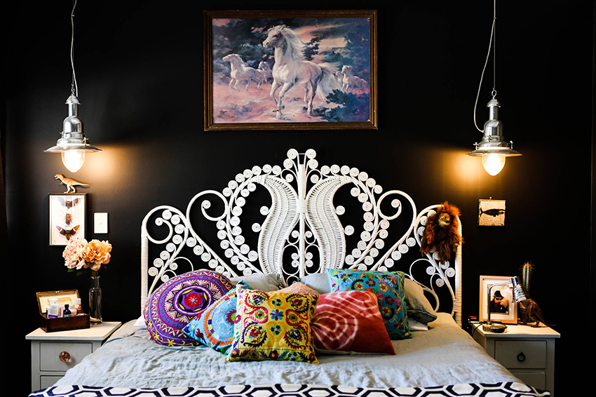 Kepala katil, diperbuat daripada rotan, kelihatan spektakuler, cantik dan tidak biasa