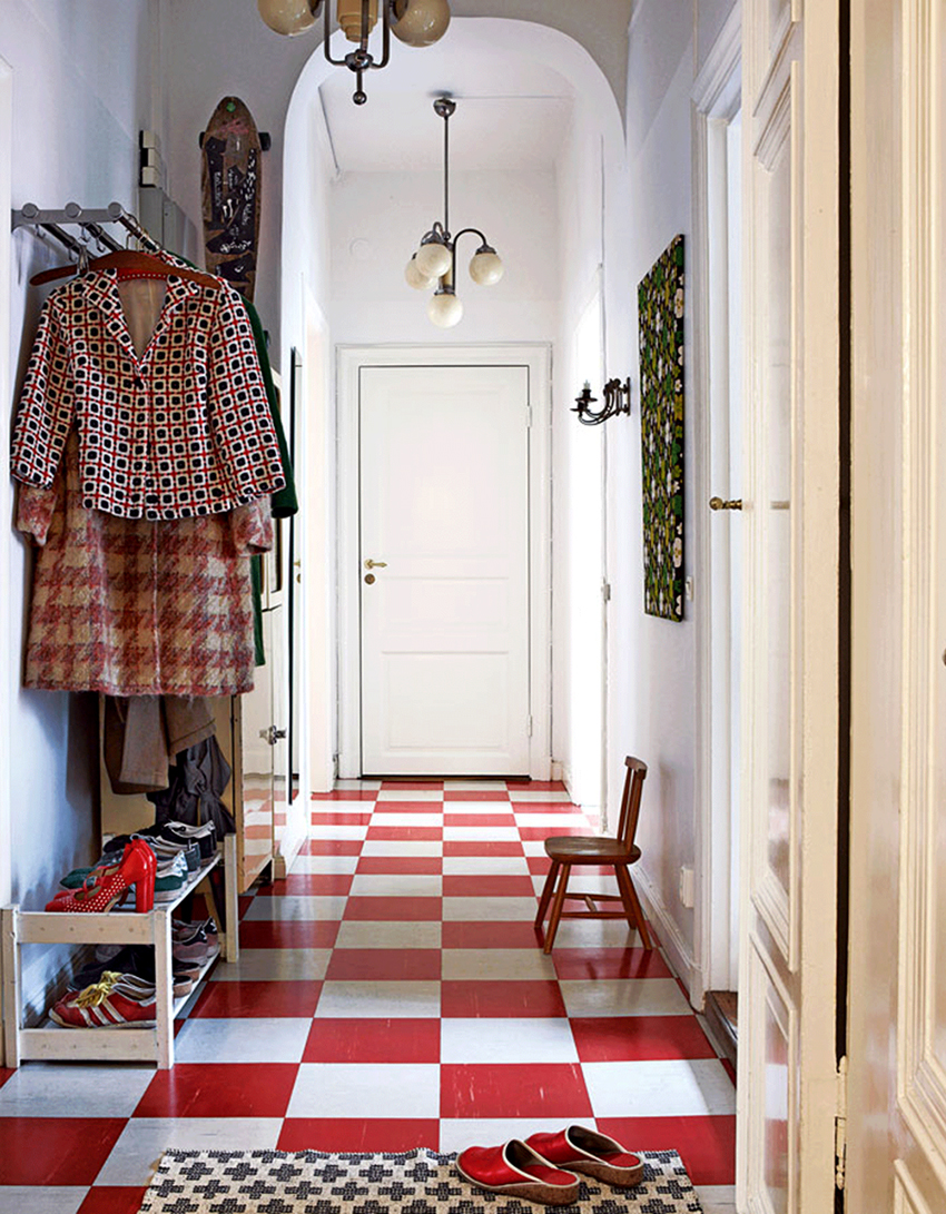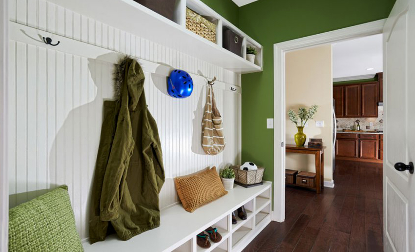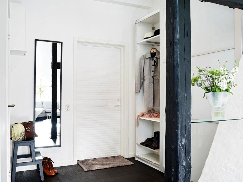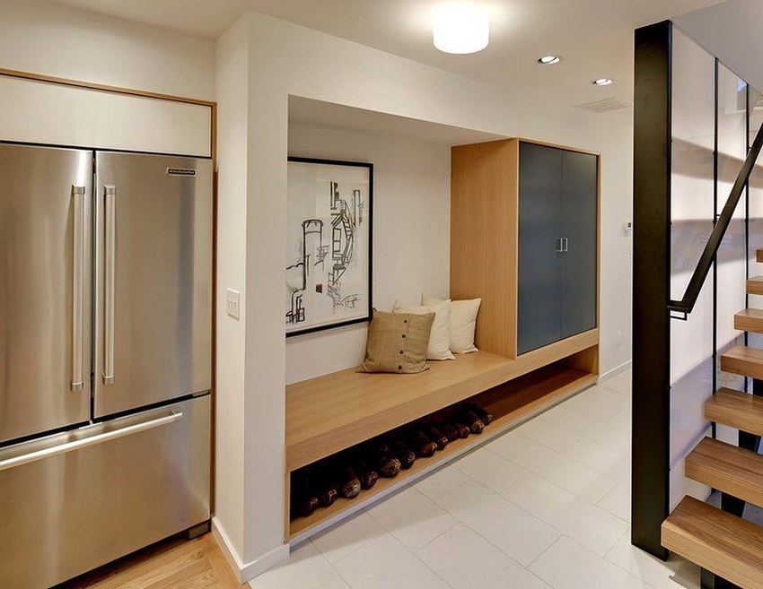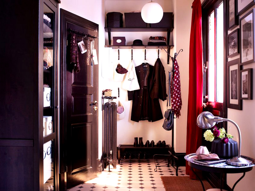 - reka bentuk lorong: untuk menjadikan pedalaman kelihatan lebih ringan, lebih baik menggunakan warna terang dan rak terbuka;