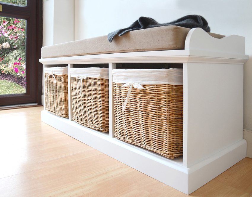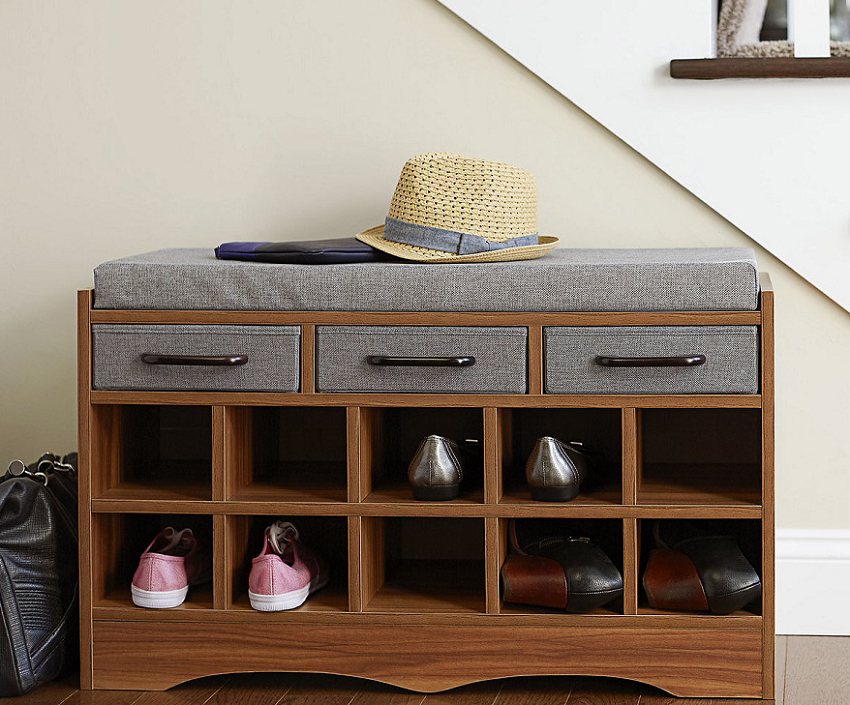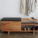 Rak kasut dengan tempat duduk di lorong adalah lekapan kecil dengan tempat duduk lembut di atas. Reka bentuk ini boleh dengan atau tanpa punggung, ia sering kelihatan seperti ottoman atau bangku kecil. Selalunya, produk ini tidak mempunyai pintu dan laci, dan semua kasut disimpan dalam kedudukan terbuka. Peranti seperti itu dapat dilengkapi dengan penyangkut, meja samping tempat tidur kecil untuk menyimpan barang-barang kecil atau dudukan telefon. Model ini sangat mudah digunakan dan kelihatan bergaya dan cantik di lorong.