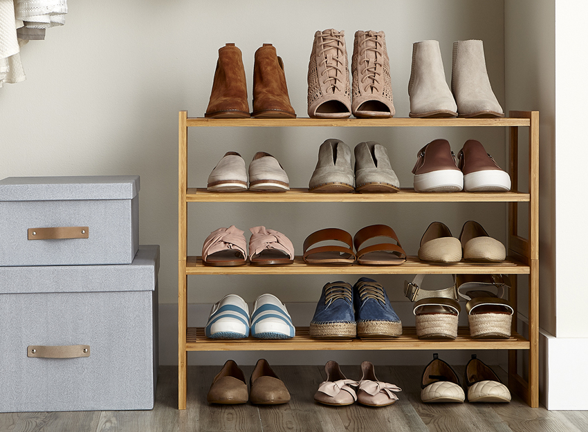 Terdapat rak untuk kasut jenis terbuka (rak) dan tertutup (rak kasut). Yang paling biasa di antaranya ialah struktur satu, dua, bertingkat, lantai dan gantung.