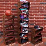 Adalah berguna untuk menggunakan rak yang terdiri daripada beberapa lapisan, misalnya, reka bentuk modular pendirian dan kabinet di dinding. Terima kasih kepada struktur ini, bukan sahaja kasut, tetapi juga pelbagai aksesori dapat disimpan di rak.