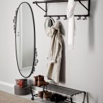 Rak kasut plastik ringan, fleksibel dan kukuh, sesuai untuk reka bentuk minimalis. Anda boleh melengkapkan reka bentuk lorong sempit menggunakan cermin. Namun, untuk gaya minimalis, lebih baik memilih cermin sederhana yang tidak mempunyai bingkai besar dan sombong, jika tidak, ruangan kecil akan kelihatan lebih kecil.