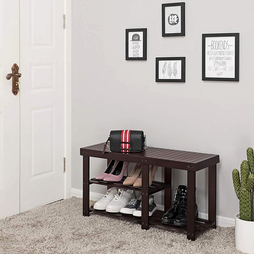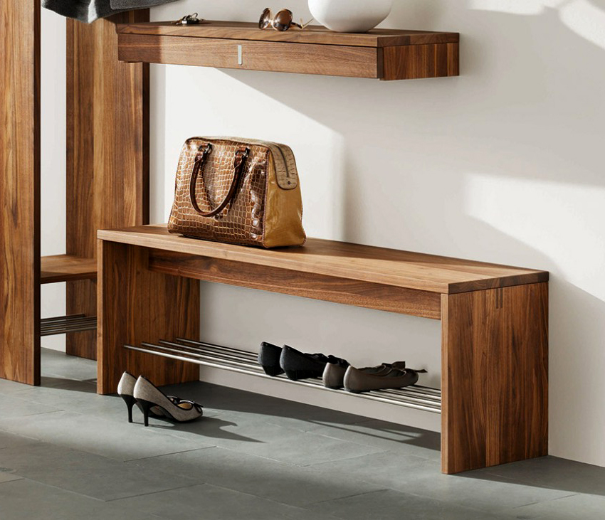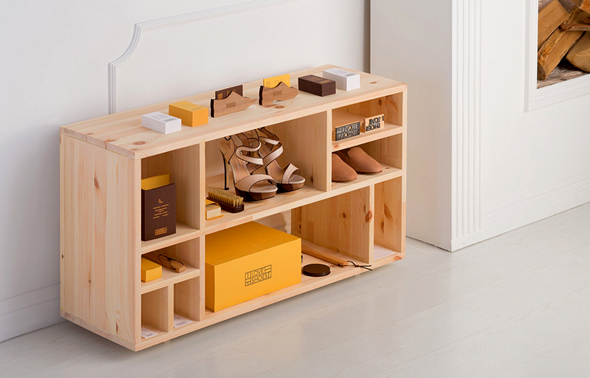 Rak kasut kayu sesuai untuk mana-mana bahagian dalam, tetapi untuk jangka hayat yang lebih lama, ia mesti dirawat dengan agen pelembap
