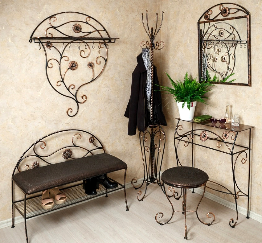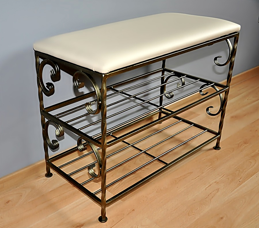 Nasihat berguna! Hanya pakar yang boleh membuat rak kasut palsu berkualiti tinggi. Untuk pembuatan, keluli dengan standard tertinggi digunakan. Kesan hiasan struktur diberikan oleh pendebungaan serbuk atau patina yang digunakan. Rak kasut mesh logam memberikan udara segar.