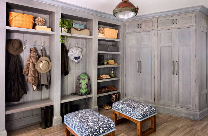 Untuk bilik gaya negara, ruang terbuka, rajutan kasar atau peti laci besar dengan pintu legap yang terbuka lebar sesuai. Kelengkapannya mestilah logam, tidak bersahaja dan tidak bersinar. Perabot seperti itu semestinya menimbulkan keselesaan dan suasana yang hangat dan sederhana di lorong.