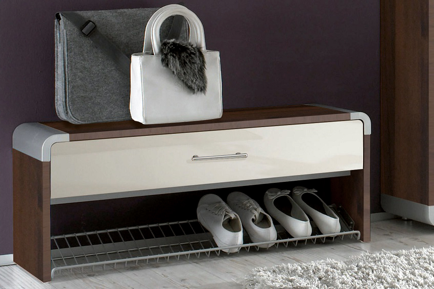 Rak untuk kasut di lorong: bahagian dalaman yang tidak terpisahkan