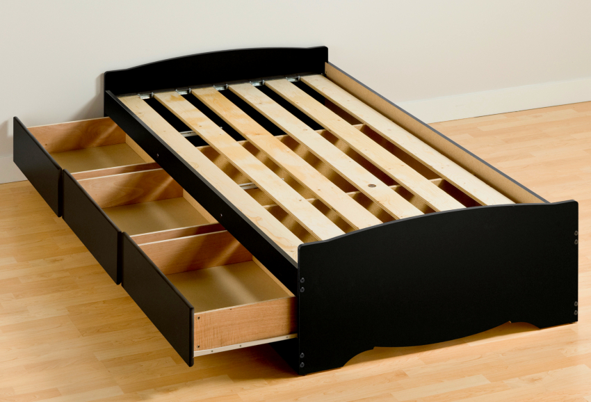 Selalunya, ketika membeli, orang lebih suka katil dengan ketinggian 50 cm. Laci dianggap mudah, tetapi anda perlu mengira terlebih dahulu sama ada terdapat cukup ruang di dalam bilik sehingga mudah untuk meluncurkannya keluar dan masuk.