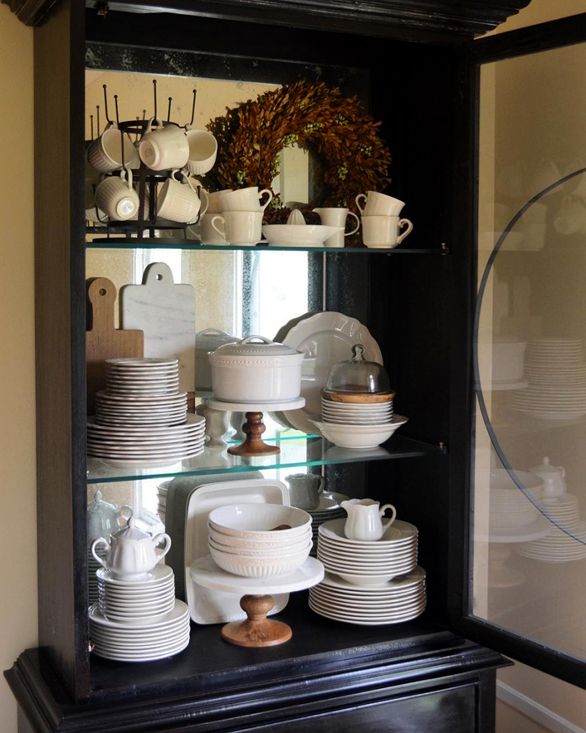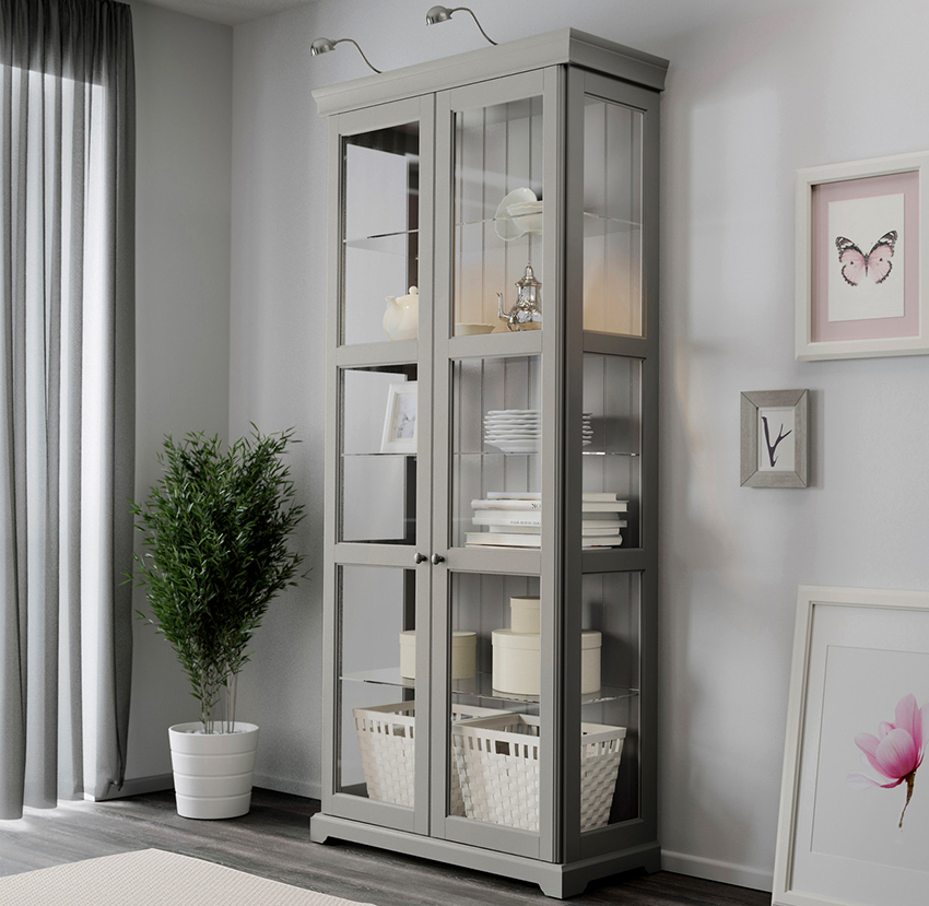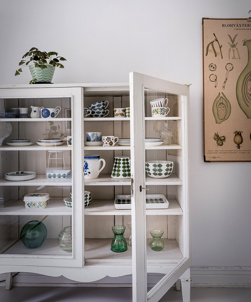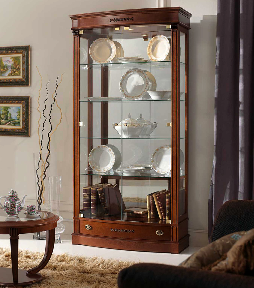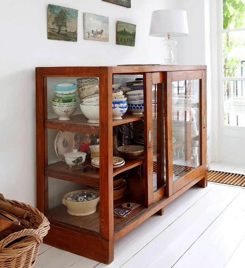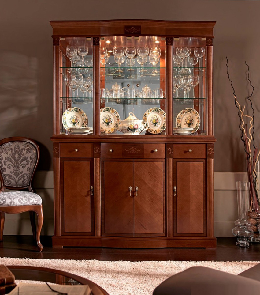 Kabinet paparan sesuai untuk meletakkan bukan sahaja pinggan mangkuk, tetapi juga barang hiasan