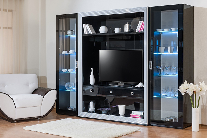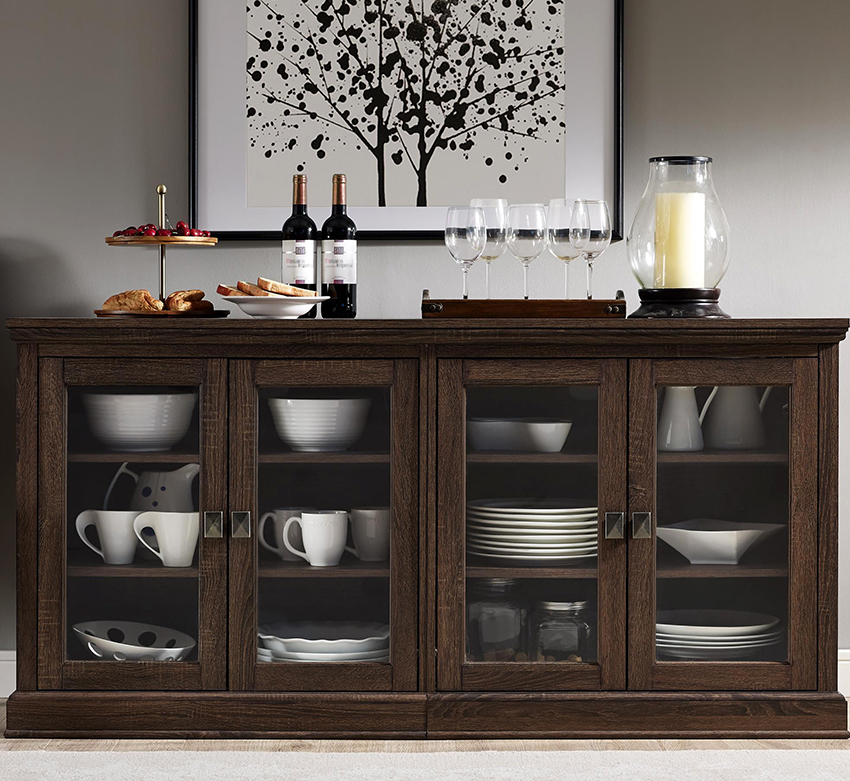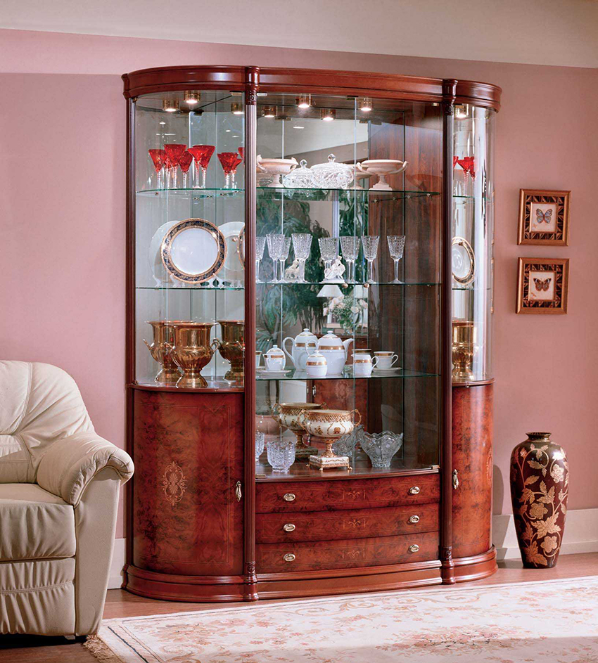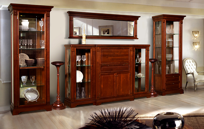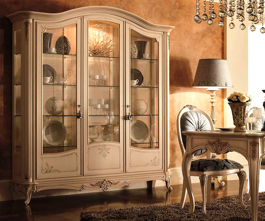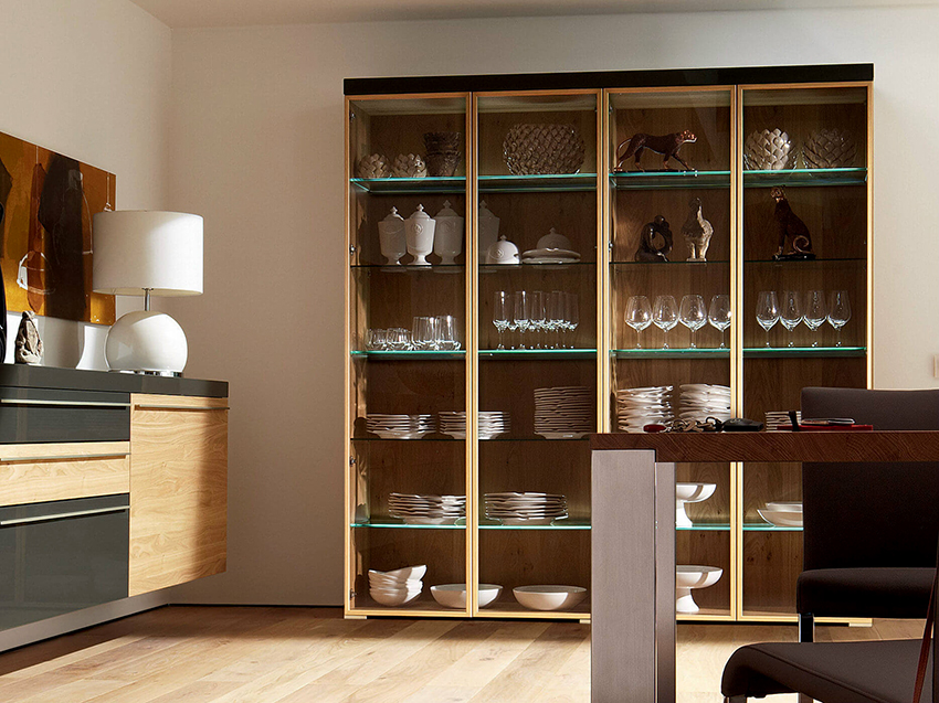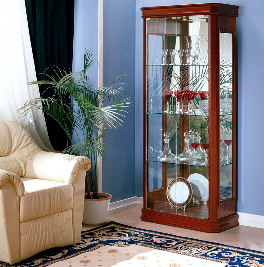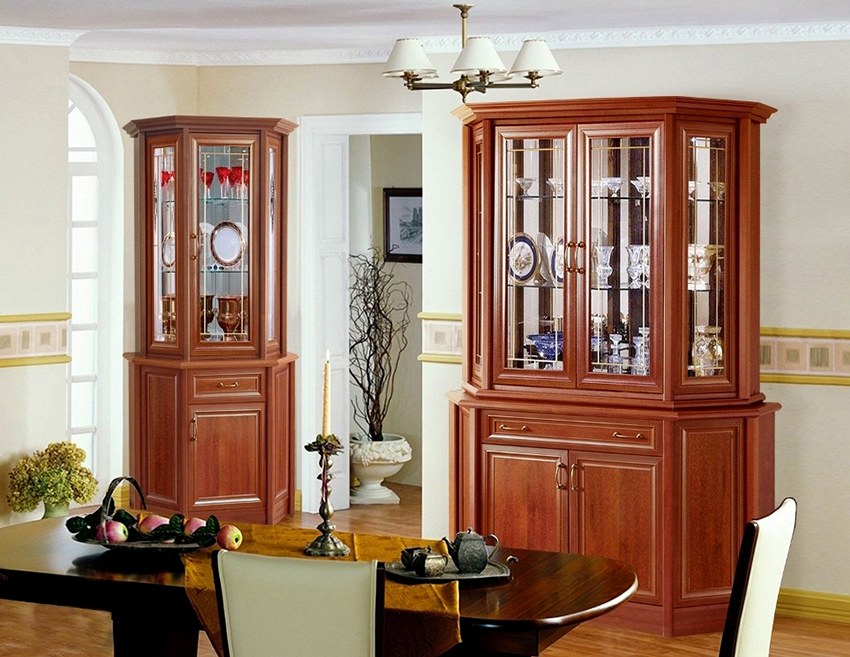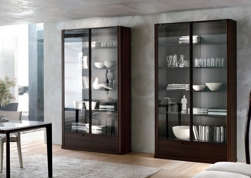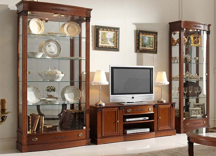 Keistimewaan dan ciri kabinet paparan untuk hidangan di ruang tamu