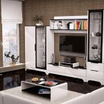 Slide sudut menunjukkan kehadiran kabinet sudut di alat dengar, yang, sebagai peraturan, terletak di tengah struktur keseluruhan. Kabinet lain dipasang secara radikal di sepanjang dinding bersebelahan. Alat dengar sedemikian diletakkan di ruang tamu yang luas dengan bentuk persegi.