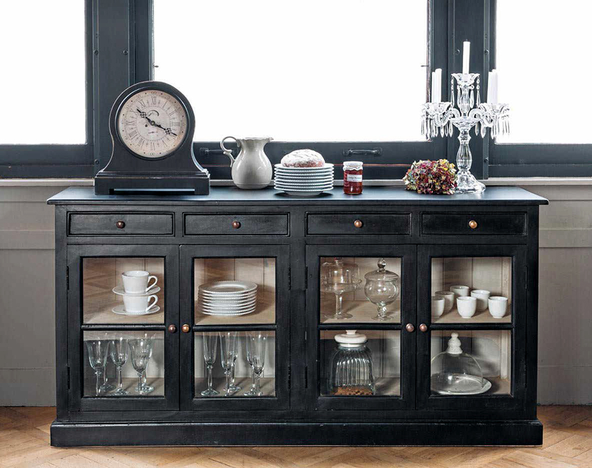 Papan sisi klasik mempunyai banyak rak dan pintu kaca