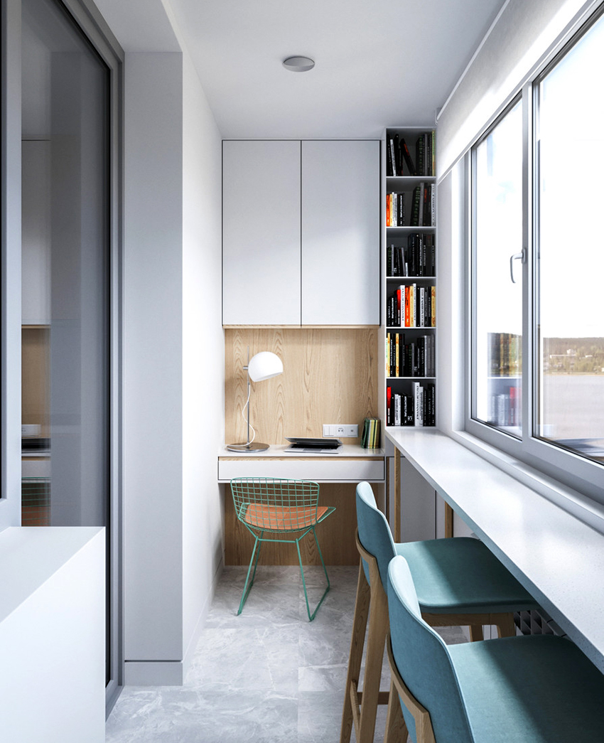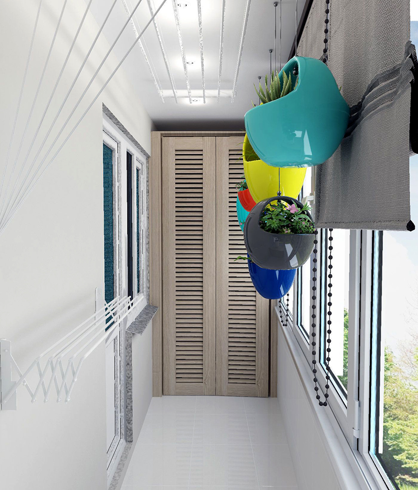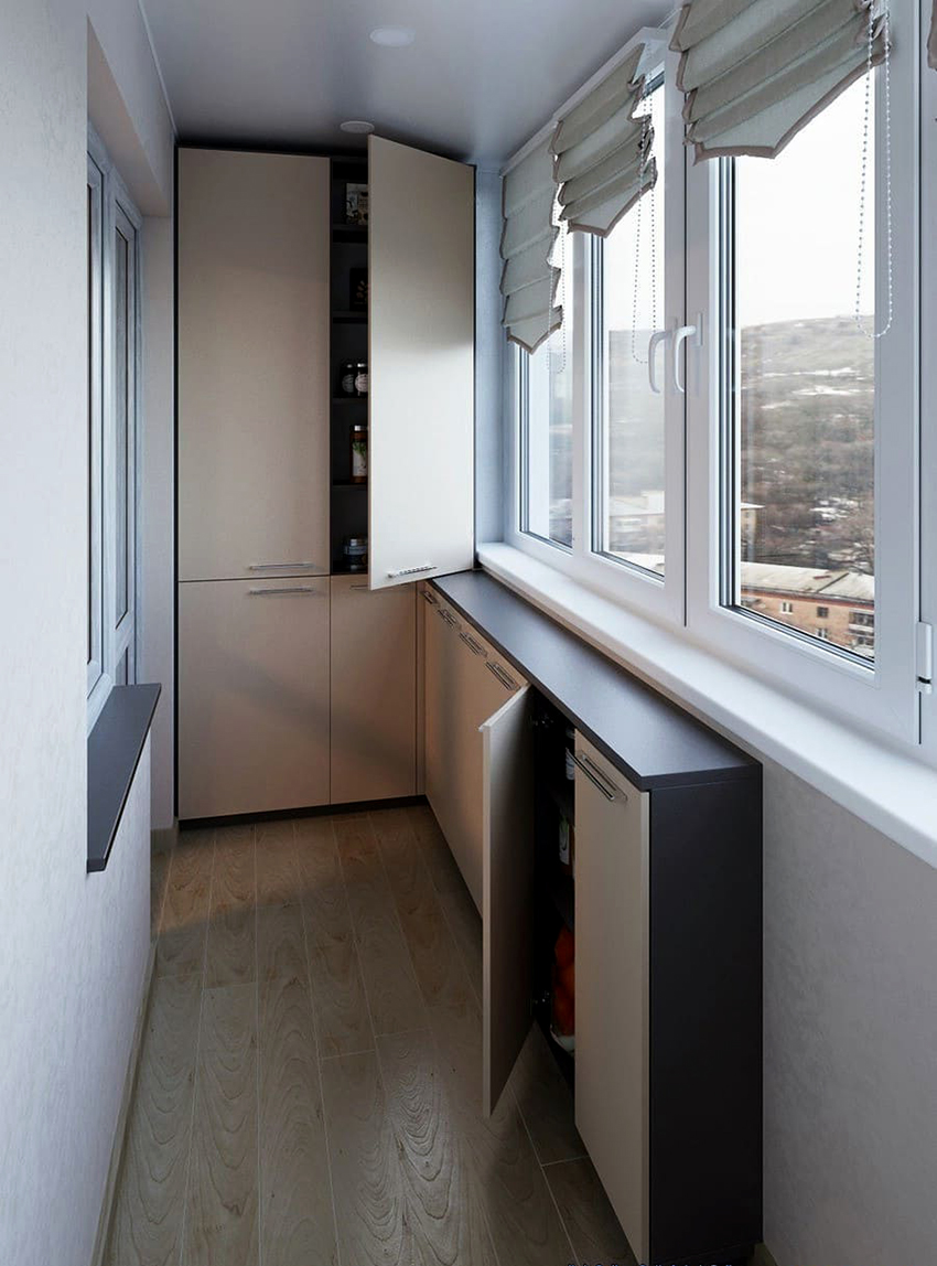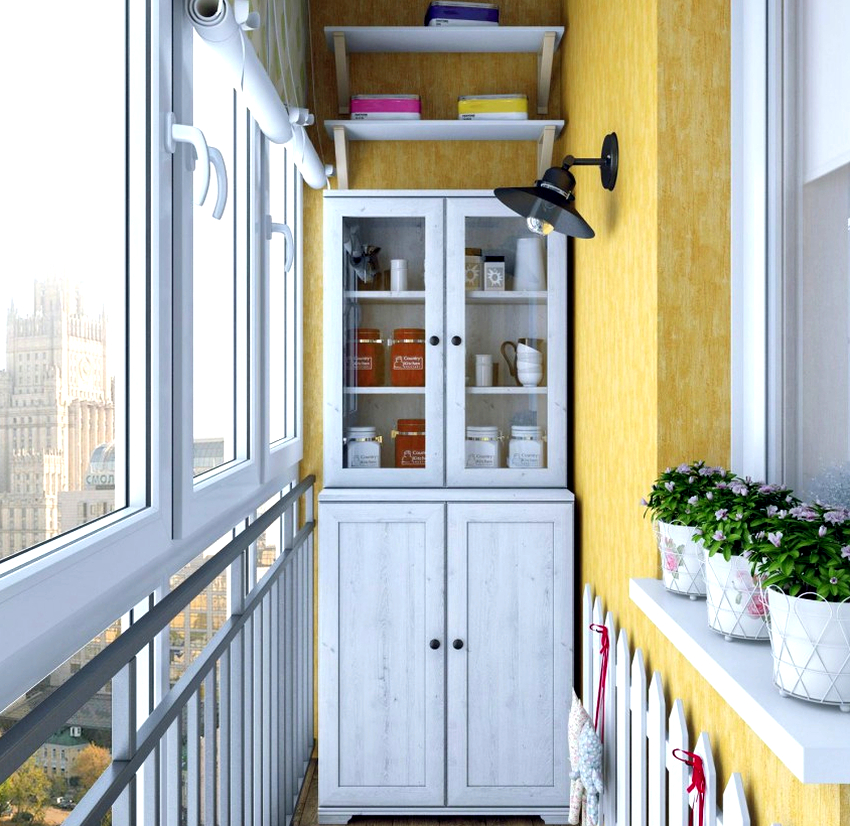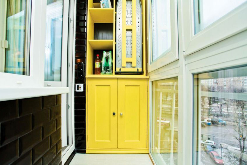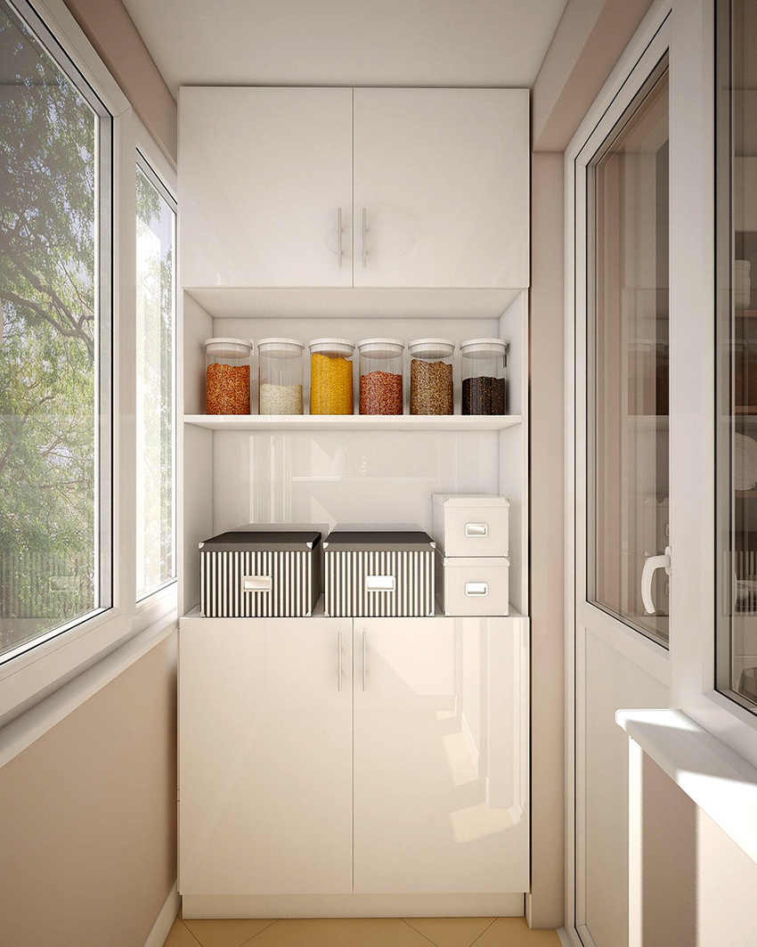Pemasangan kabinet di balkoni adalah mudah kerana tidak perlu memilih fasad yang sesuai dengan warna perabot lain di apartmen