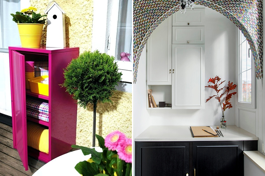 Beberapa idea menarik untuk membuat reka bentuk balkoni menggunakan kabinet