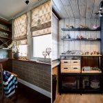 Kotak dengan perkakas dapur kecil boleh disimpan di rak terbuka, dan barang yang tidak dapat disimpan dengan kemas dilipat di belakang pintu tertutup. Pilihan lain untuk menggunakan rak terbuka ialah menanam bunga atau menyiapkan anak benih untuk musim kebun.
