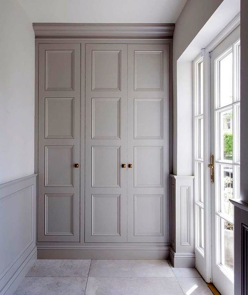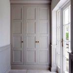 Almari pakaian terpadu berwarna solid dengan sebilangan besar rak dan laci akan membantu menyembunyikan banyak perkara yang tidak perlu