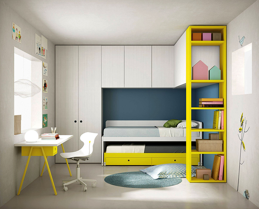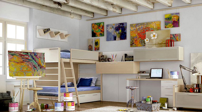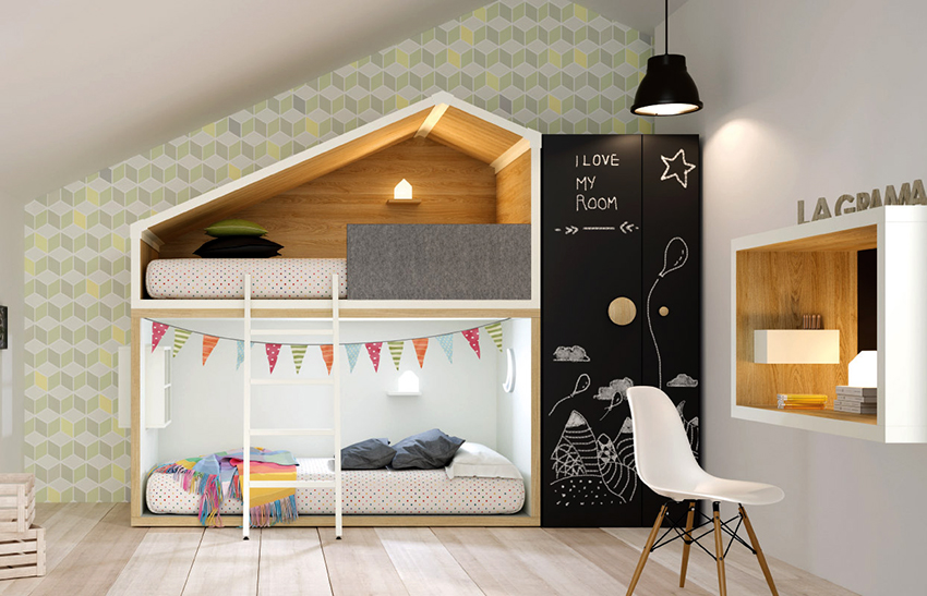 Perabot kanak-kanak untuk dua kanak-kanak: alat dengar moden dan reka bentuk modular