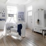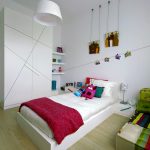 Kreatif dan berani - almari pakaian putih di tapak semaian. Dan biarlah ukurannya yang luar biasa, ia akan menjadi pusat dalaman ruangan. Bilik akan dipenuhi cahaya, secara harfiah dan kiasan. Keputihan yang murni akan membangkitkan sikap positif pada anak.