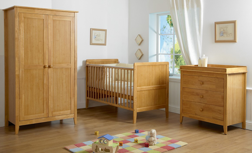 Kayu untuk pembuatan almari pakaian kanak-kanak jarang digunakan. Bahan ini berat dan mahal. Memandangkan perabot kanak-kanak digunakan dalam jangka masa yang singkat, banyak orang lebih suka tidak melaburkan dana besar di dalamnya.
