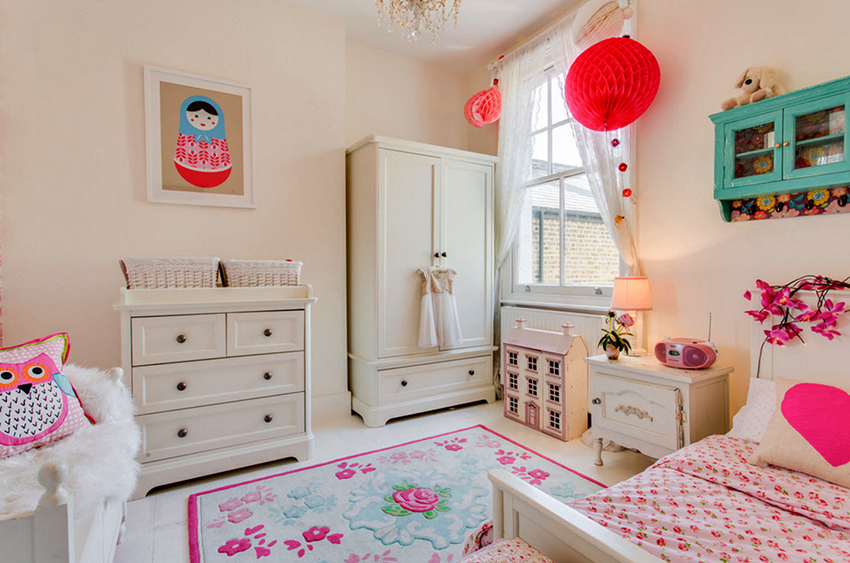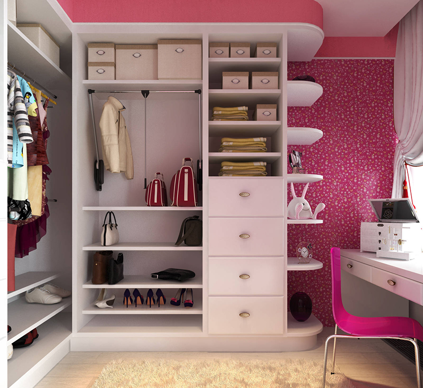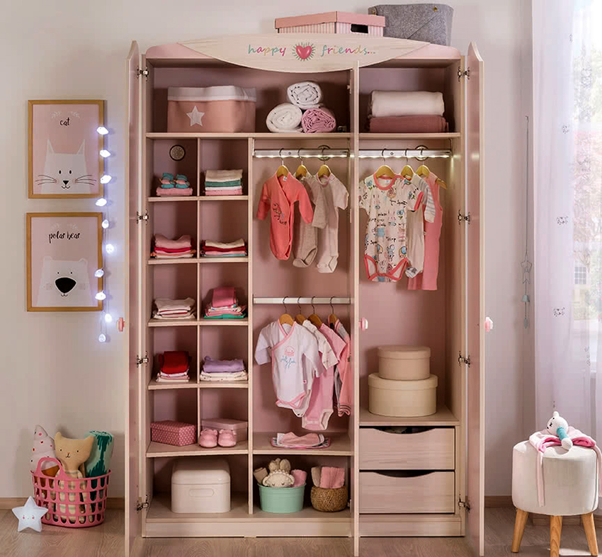 Almari pakaian untuk kanak-kanak perempuan mesti sesuai dengan reka bentuk dan seperti perempuan simpanannya